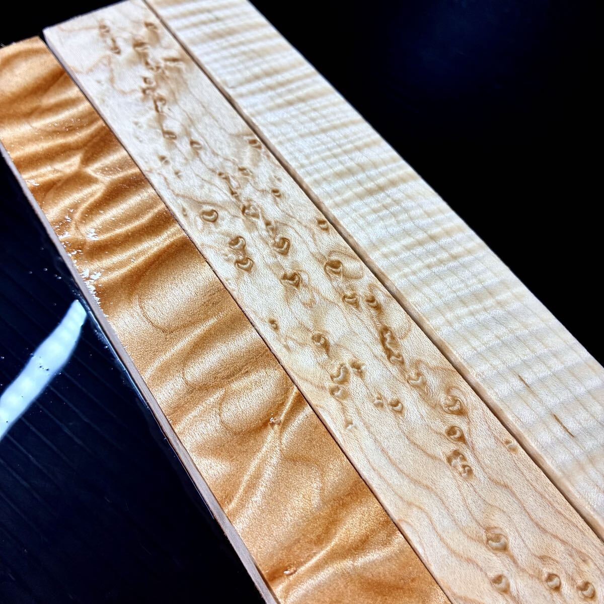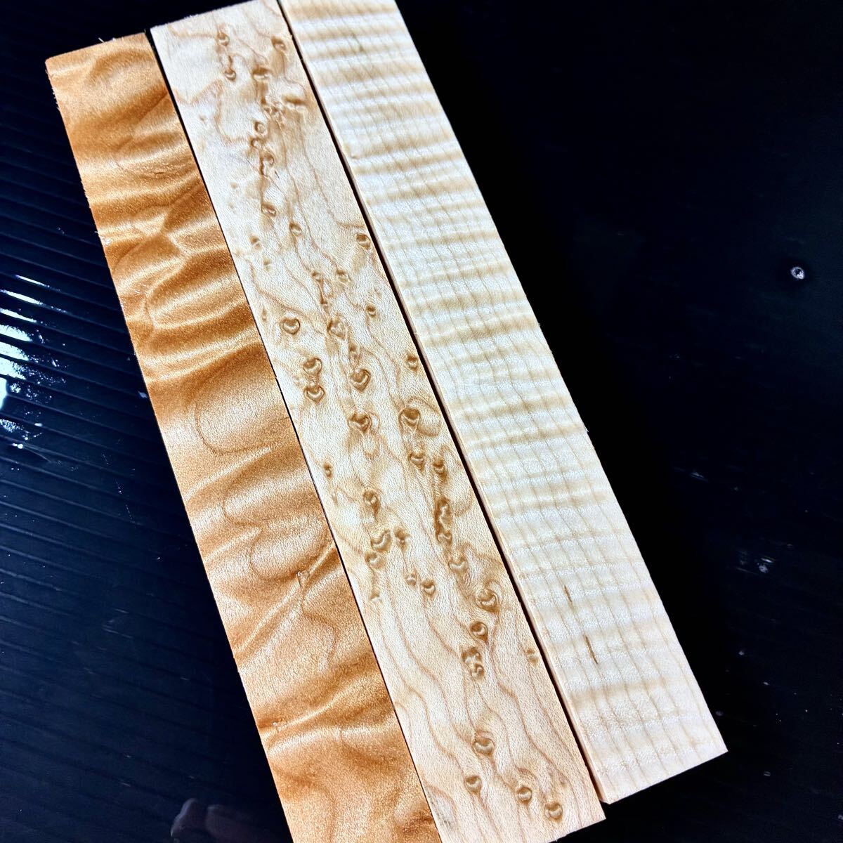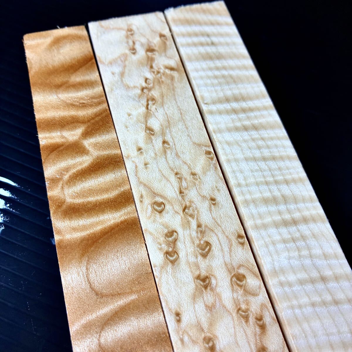 『YY0154』3種ミックス 極上美杢 カーリー キルト バーズアイ(縦幅厚182-23角㎜)ペンブランク ハンドメイド素材