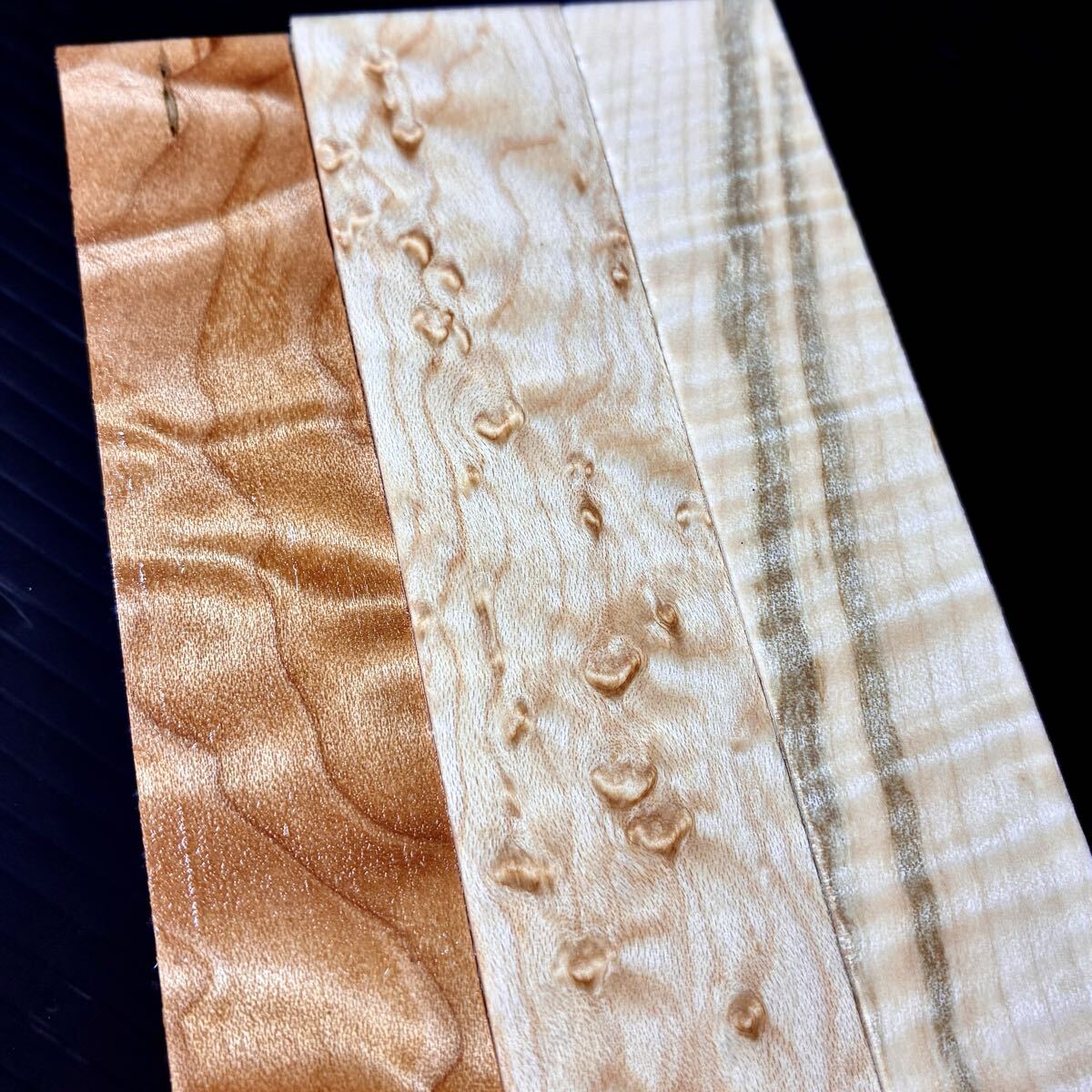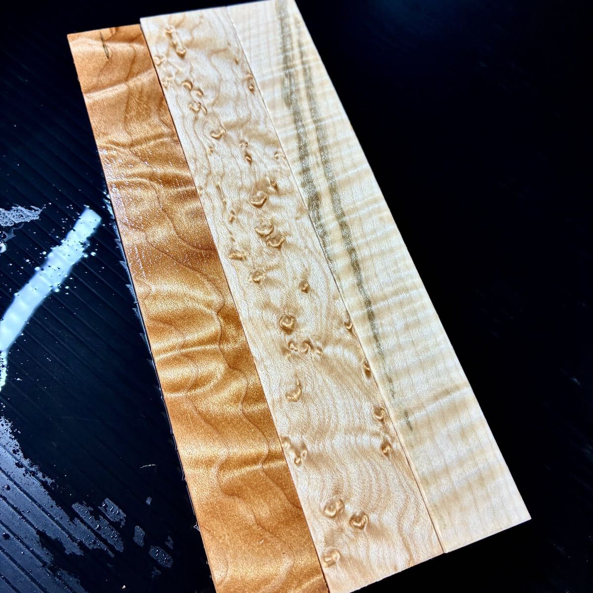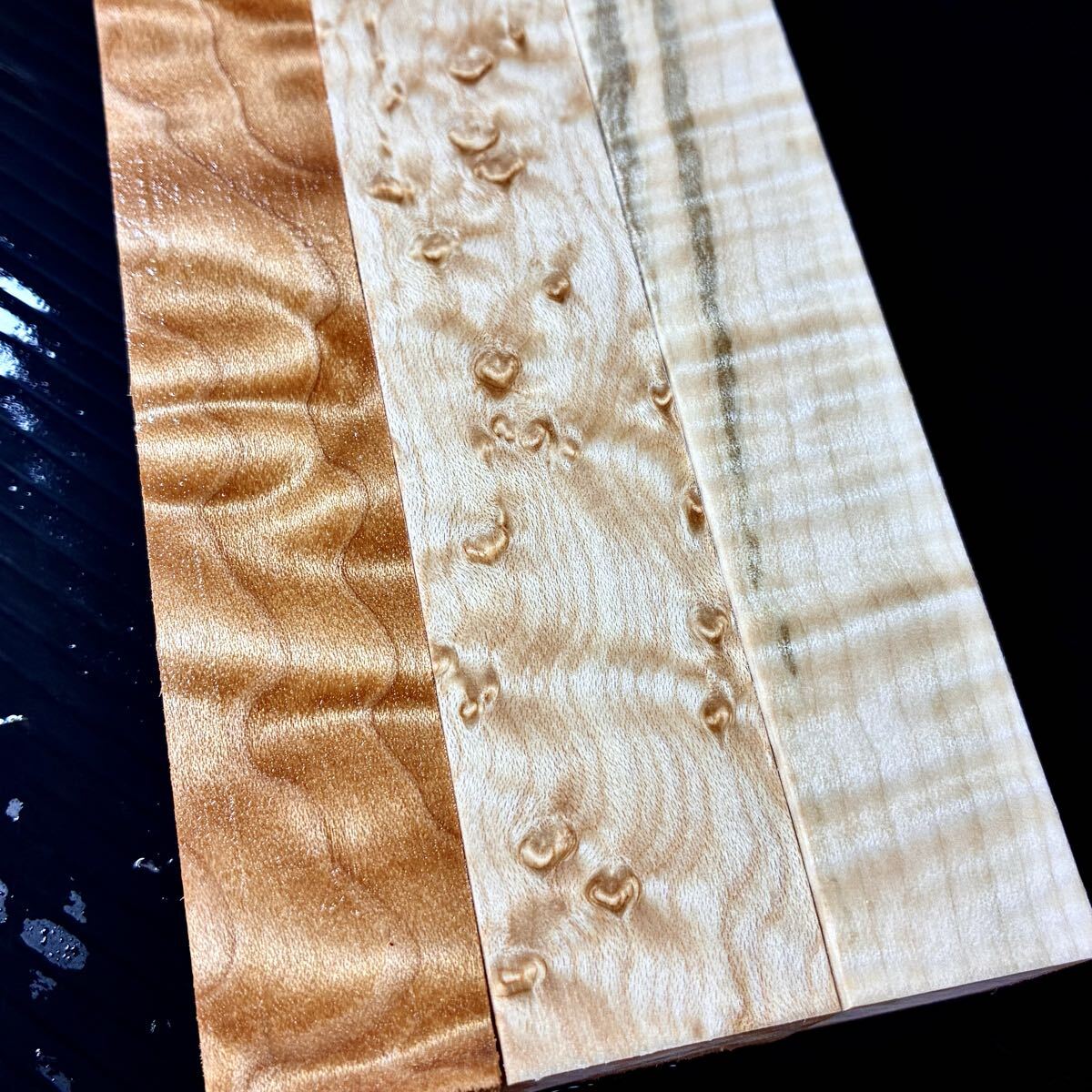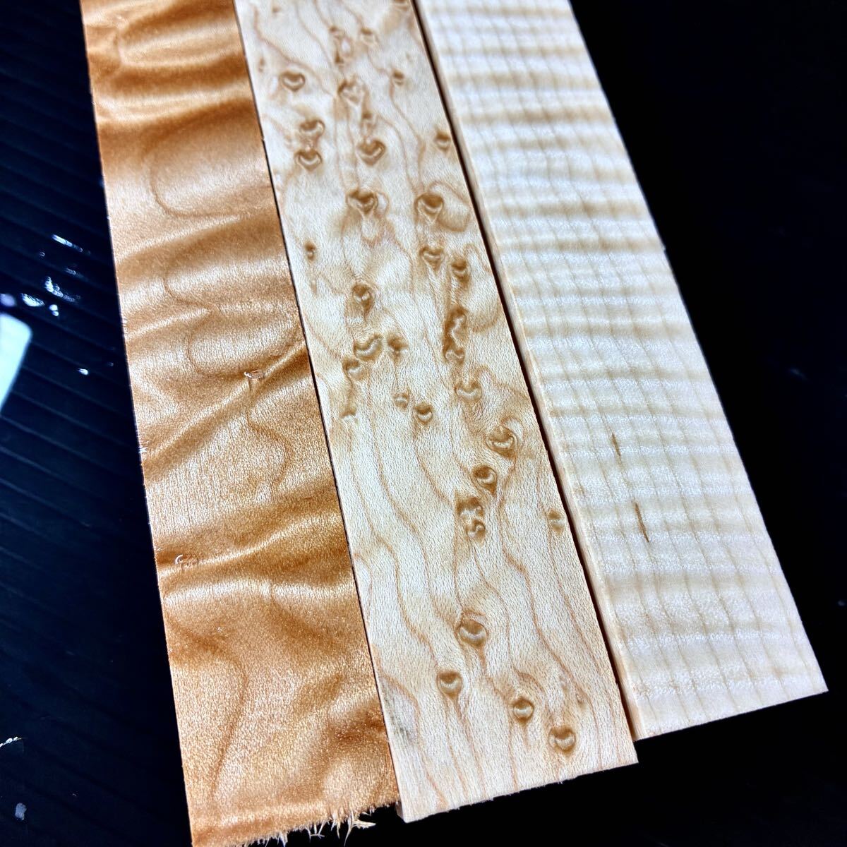 『YY0154』3種ミックス 極上美杢 カーリー キルト バーズアイ(縦幅厚182-23角㎜)ペンブランク ハンドメイド素材