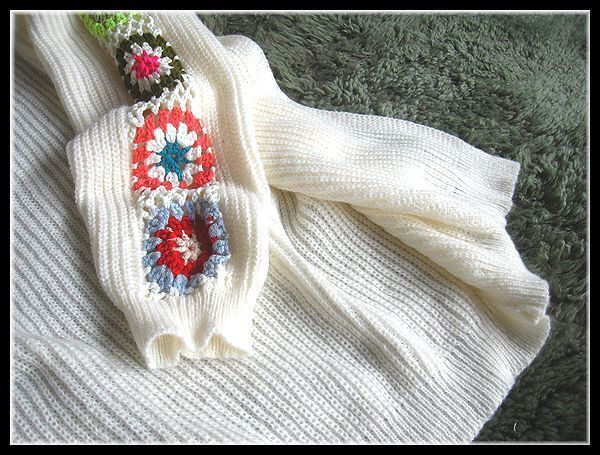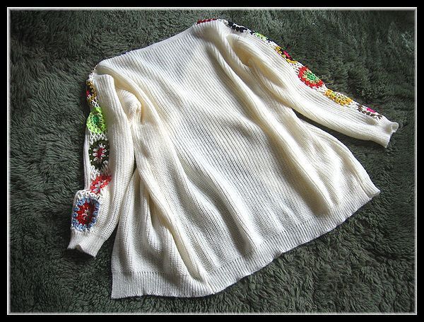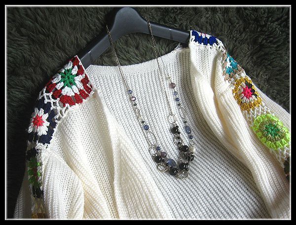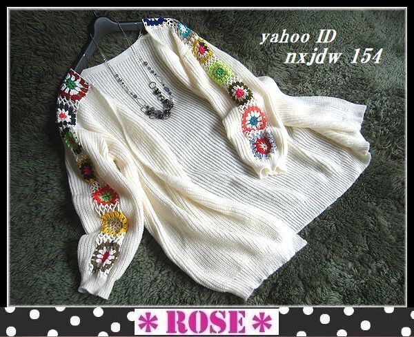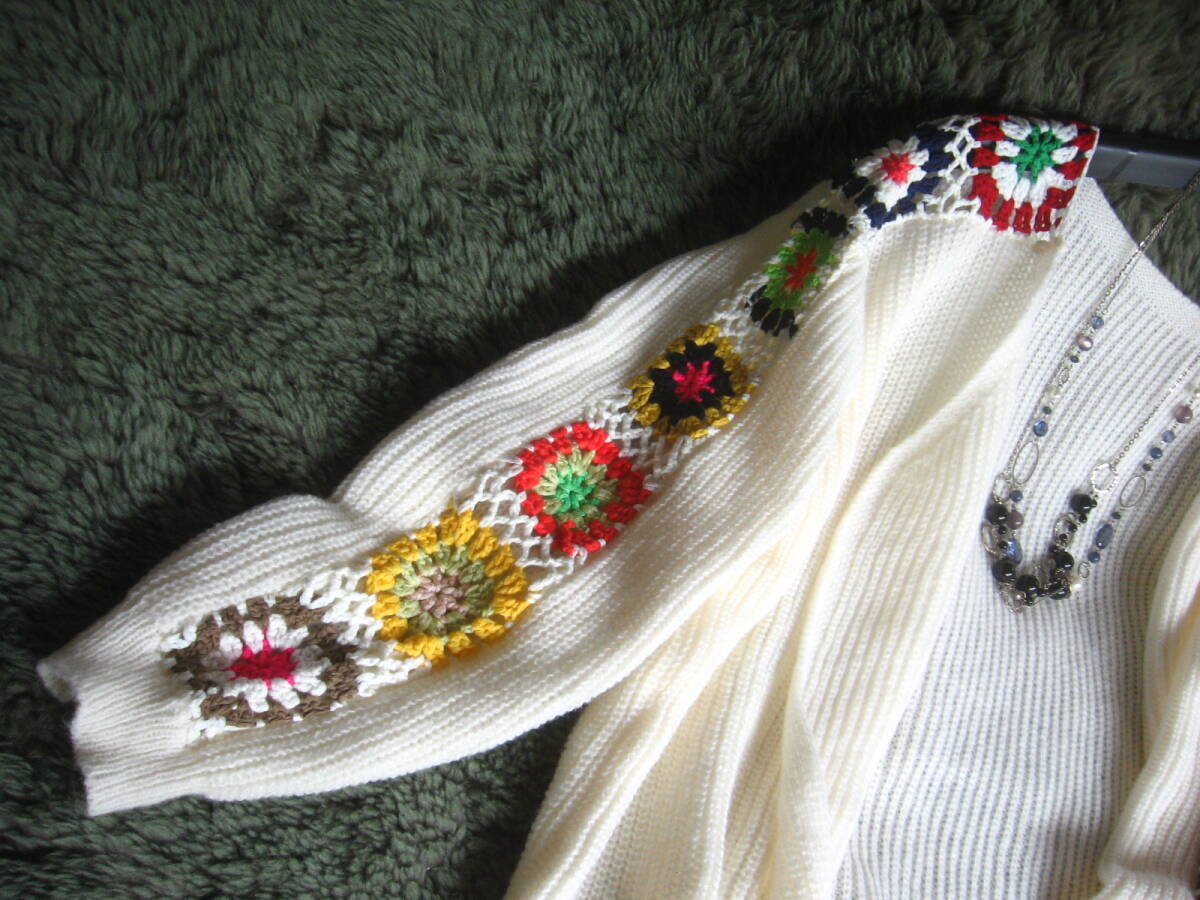 ◆Rose◇ゆったりワンサイズ・カラフルクロシェのモチーフニット♪ゆったり畔編みトッパーカーデ/オフホワイト