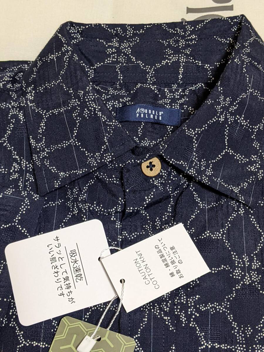 タグ付き アーノルドパーマー 総花柄 吸水速乾 半袖シャツ ネイビー系 サイズМ 羽織 | |||