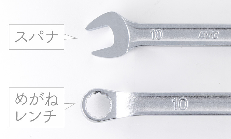 但し、レンチとスパナは形状に違いがあり、日本では慣例的に先端部分が閉じた形状でボルトやナットの上側から填めるのがレンチ、先端がU字型に開口した形状でボルトやナットを挟み込むのがスパナと呼ばれています。( ※ 画像 2 )