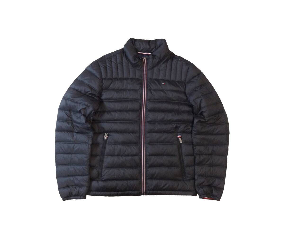 TOMMY HILFIGER トミーヒルフィガー ダウンジャケット ナイロン ブラック 黒 襟ロゴ NATURAL DOWN メンズ S