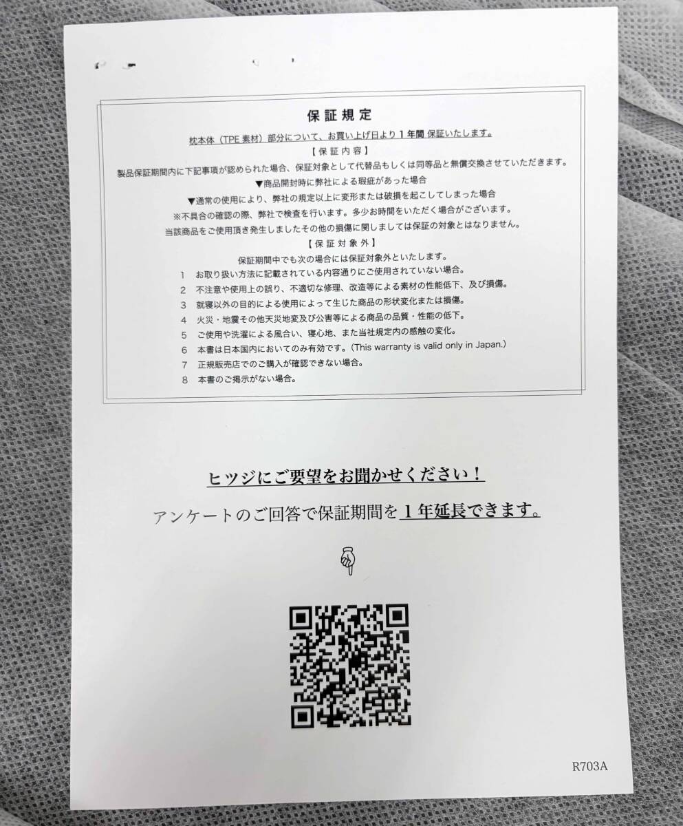 枕カバーの劣化、ファスナーの故障などは保証対象外となります。