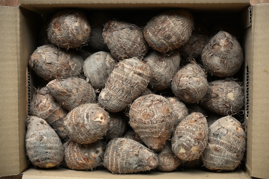 山野産さといもは脱脂米糠などの有機肥料を多用して栽培され、煮崩れしないのに柔らかく粘りがあり、もっちりと甘いのが特徴です。