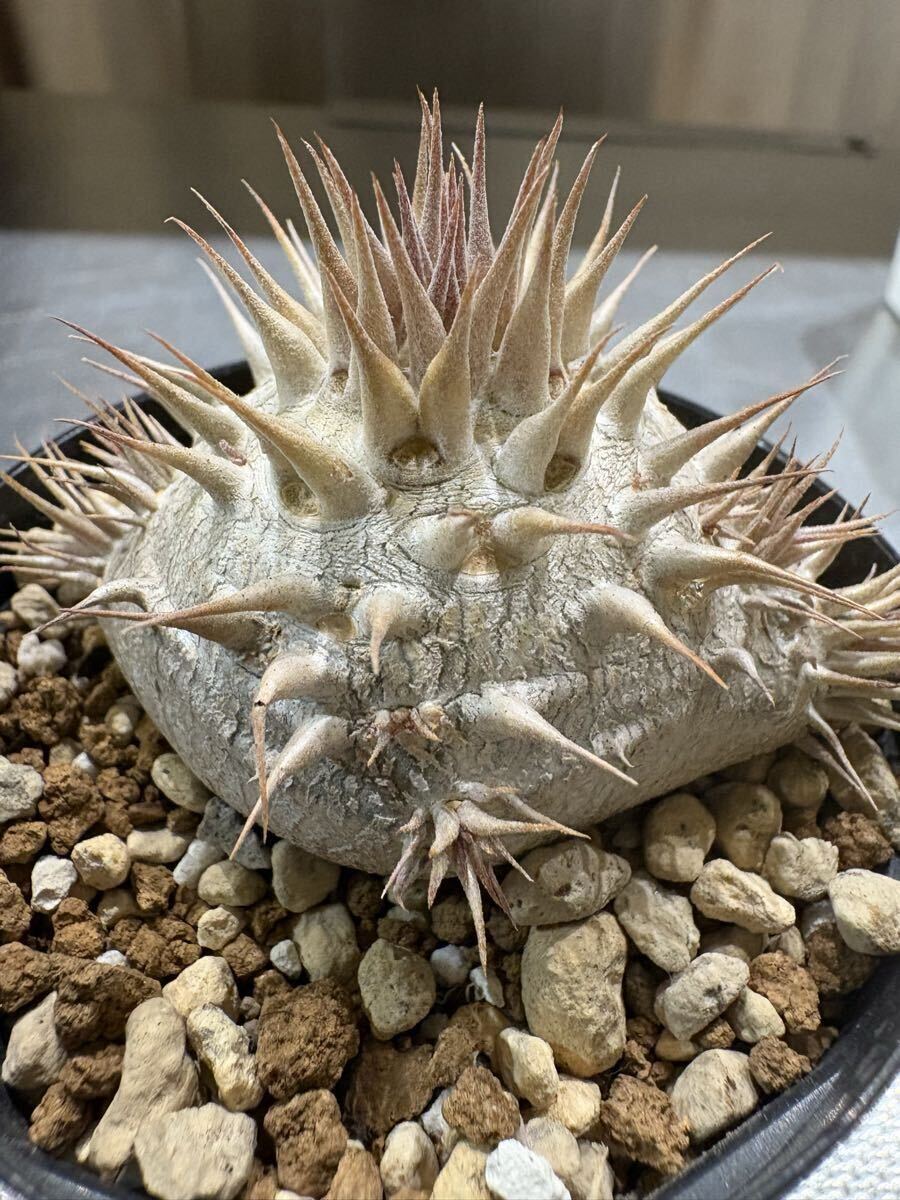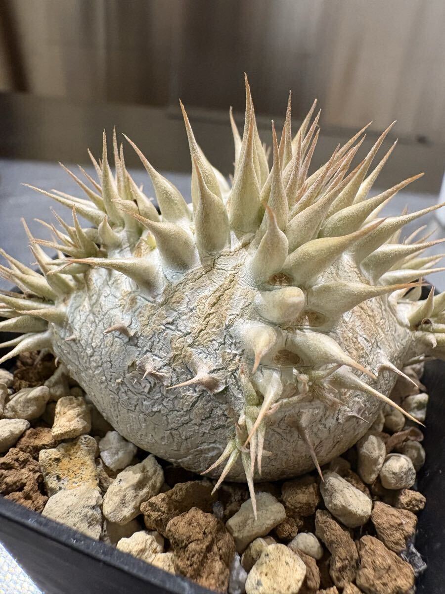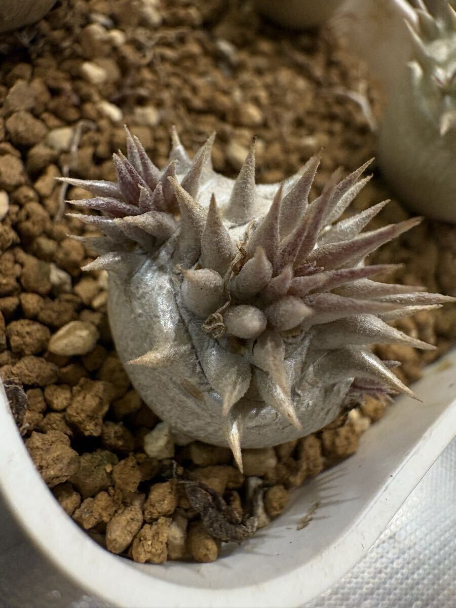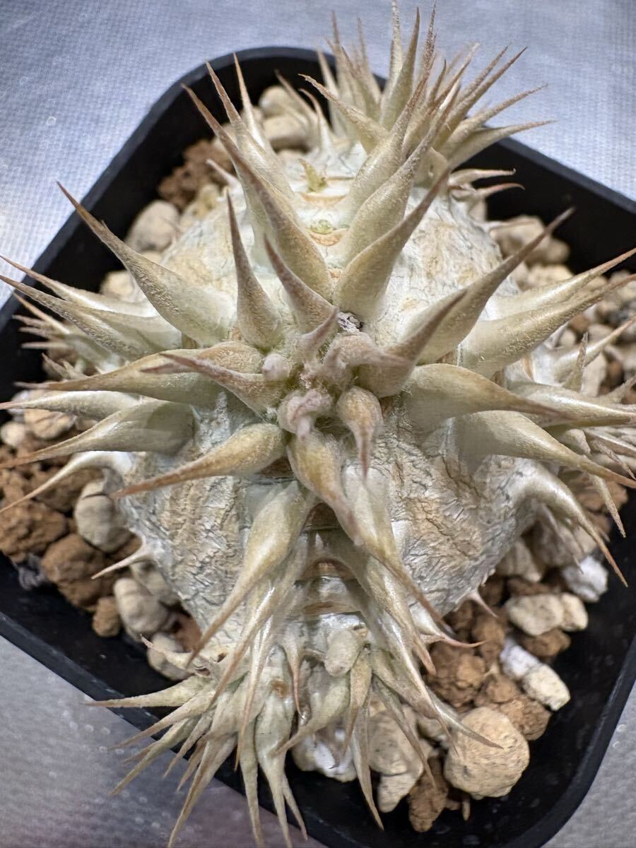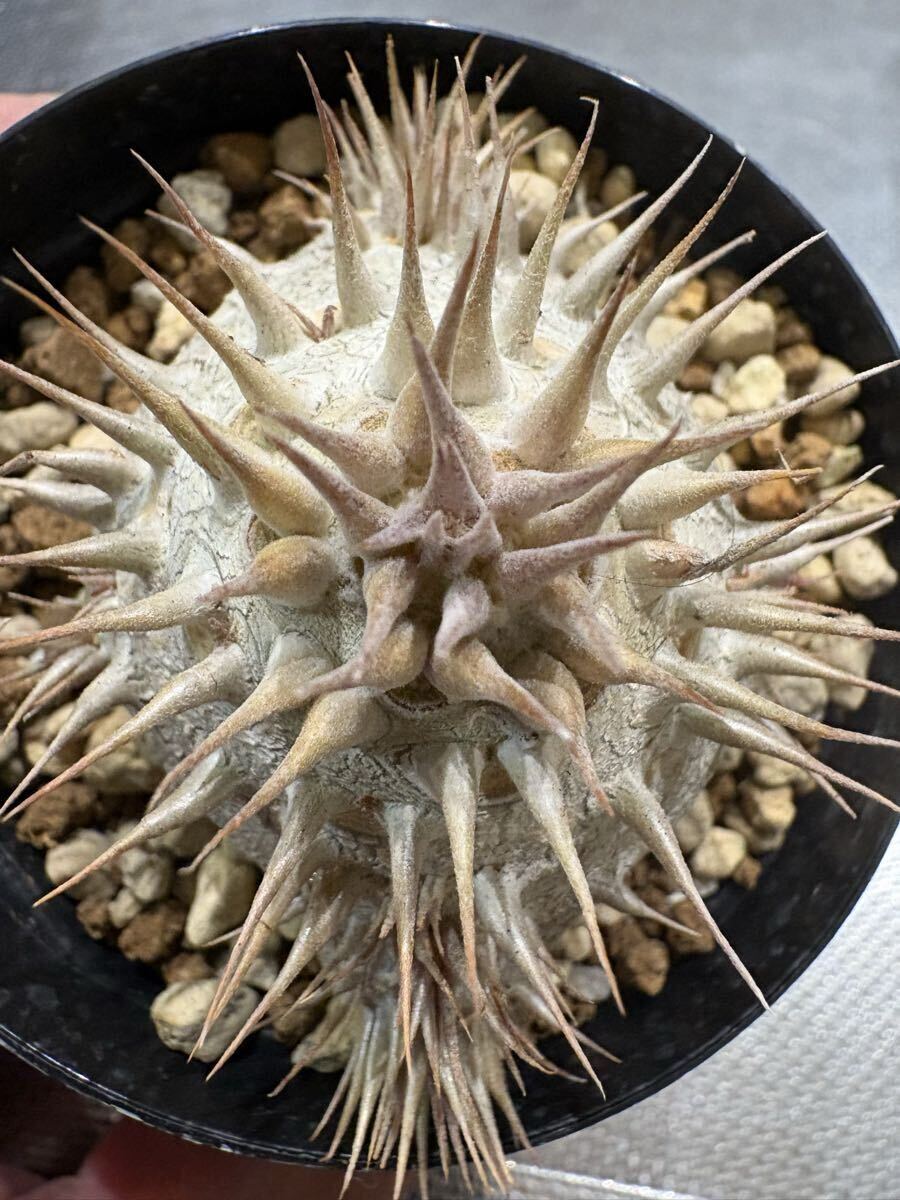 *朝晩が冷えてきてカクチペス以外落葉済みですが元気に生きています!上手く休眠できていると思います! 写真と到着時と葉っぱの感じが異なっていると思います根っこはパンパンなので元気ですのでご安心ください。 今は逆に発送しやすい時期でもあります! --- ◎78オリジナルハイブリッドのパキポディウムを含む豪華セットです! ・022番ハイブリッド(78hyb-022) 1歳半 78オリジナル「78魔界大黒」と呼んでいます。 私の定義としてロスラ系とブレビ系(一部扁平大黒も含む)のミックスを大黒としております。これは私の私見ですのでご容赦ください。何より、ボディーや葉や花の面白さを楽しむためのミックスです。こちら022系は未開花なので来季の開花が楽しみでなりません。ボディーは丸〜扁平〜生姜型と様々で可愛いです。 花粉親:実生丸葉マカイエンセ(両親山木、山木っぽい丸葉形質、dob氏産) 種子親:実生レウコキサンツム(両親山木、真四角の綺麗な形、鷲氏産) 両親の出所は信頼のおけるビッグネームなので,安心素材です。きっちり管理されていますので変な血が入っていることはないと思われます。 今回は,ご好評につき2株セットで出品です! 少し違ったタイプを選んでいます! 丸型スリット鉢75 ・081番ハイブリッド(78hyb-081) 今年作ったハイブリッドの初リリースです。 9株/鉢で播種し、成長が早いものを移植した残りなので歯抜け状態です。4株も載っていますのでお得かと。 花粉親がレウコキサンツム(鷲株)、種子親が実生ホロンベンセ、という面白いハイブリッドです,どんな形のどんな色の花が咲くか楽しみでなりません! 4株の中でも色の違いや形のバリエーションが見て取れます。 ハイブリッドの妙を楽しんでください! 来春個室を与えてやってください! プラステラ90 ---- 以下は、信頼おける大先輩の趣味屋さんから譲って頂いた種子からの自家実生株もしくは導入実生株です。 ・白エブ/ブレビカリックス(suzu産)1.5歳 花粉親:実生白花エブレネウム(大きめ丸花株か6花弁も咲くらしい株のどちらか) 種子親:実生ブレビカリックス 未開花なので花色花型は不明 兄弟株はぽってり丸型から多頭まで様々な形状があります! 丸型スリット75 (おまけ) 今季採種したパキポディウムハイブリッドもしくは純系の種子を5粒お付けします!選んでいただくことはできませんが、精魂込めて色々考えて作った面白いハイブリッドです。播種設備がない方もおられますので、必要な方は「オマケの種子希望!」と最初のメッセージで記載して下さい。 同日終了予定のほか出品物と同梱ももちろん可能です。即決で早くご落札いただいても、終了まではお取り置きしますので仰って下さい!同梱の場合梱包サイズが変わることがございます。ご落札後追ってお知らせします! (重要) 4株が上手く入る60サイズの段ボールがありませんので自分で段ボールサイズを調整しています。背の高さによっては少し葉が天井に付いた状態で発送する場合もございます。特に悪影響がないと思われる程度ですが、お気になさる方は、80サイズで発送しますので最初におっしゃって下さい! 出来れば作業の統一と窓口やレジでの煩雑さ解消のため、クロネコでの発送を選択していただけますと助かります! 気持ちの良いお取引を心がけております! 落札者様におかれましてもよろしくお願い申し上げます。 生体ですので速やかにお受け取りいただけるようお願いします。季節の変わり目なので輸送中に葉が落ちる可能性もありますが、普通のことです。ノークレイムノー返品でお願いいたします。 >