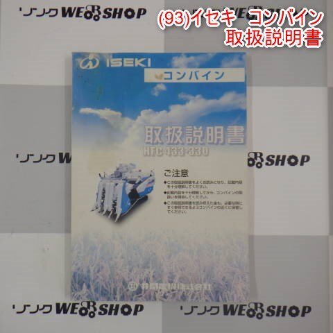 (93) イセキ コンバイン 取扱説明書の出品です。