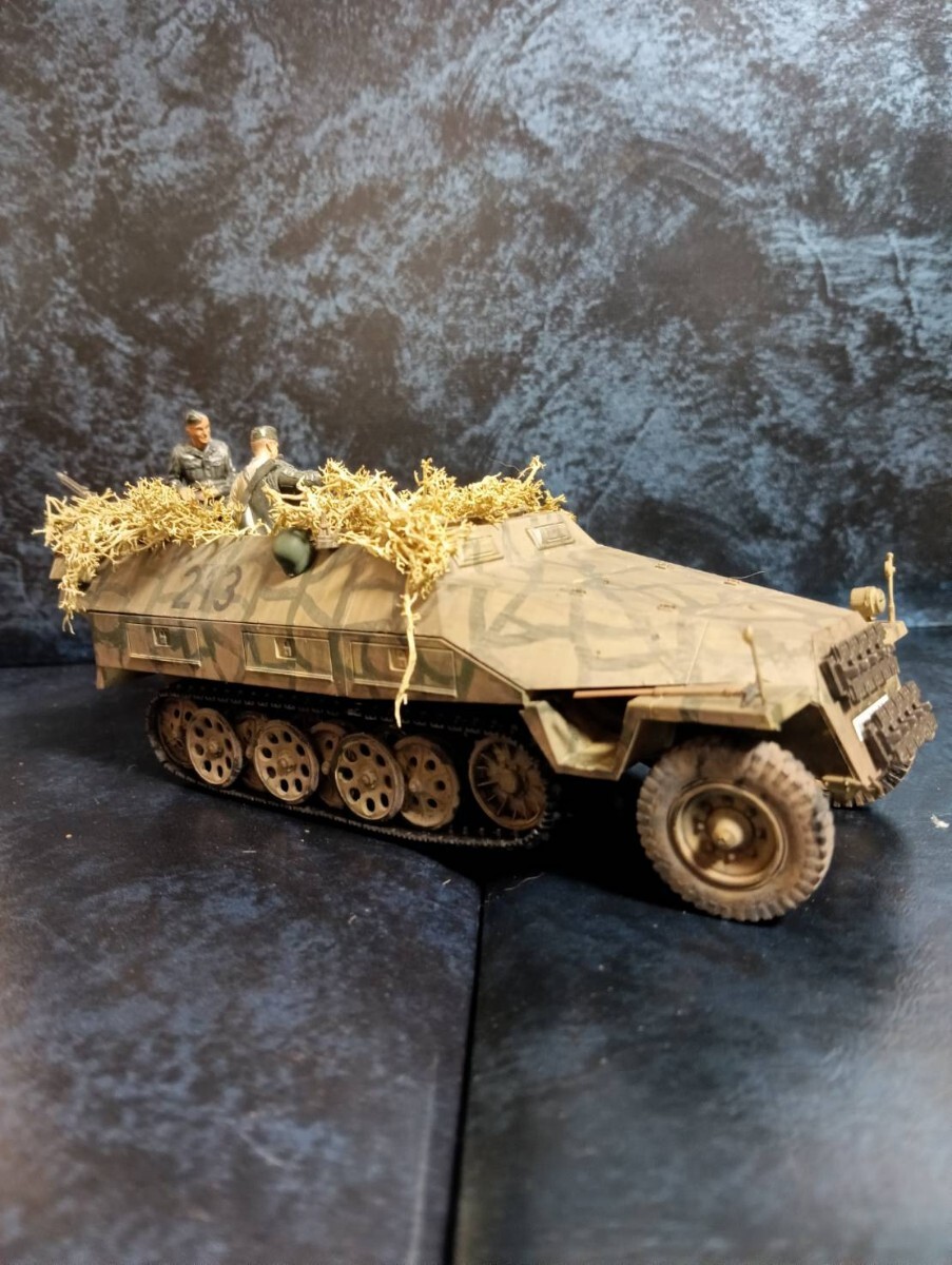 タミヤ 1/35 ドイツ陸軍 Sd.kfz251/2(迫撃砲搭載火力支援車) 完成品 塗装済み ウェザリング済み ウォッシング済み 墨入れ済み フィギュア2体付き。 フィギュア塗装は下地処理してからの筆塗りです。 その後仕上げ塗装をしてあります。 フィギュアは接着済みです。 カモフラージュ素材付き。 詳細は画像をご確認下さい(光の加減で実際と色合いが違うこともあります)。 飾る場所がなくなったので出品します。 素人作品となりますのでご理解の上ご検討お願いいたします。梱包には気を付けますが、万が一の運送中破損については、申し訳ございませんが対応出来かねますので落札者様にて補修をして頂くようお願いします。 海外や離島などからの入札は、受付けません。 素人のオークション作品ですのでノークレームノーリターンでお願いします。 ご検討是非よろしくお願いします。 >