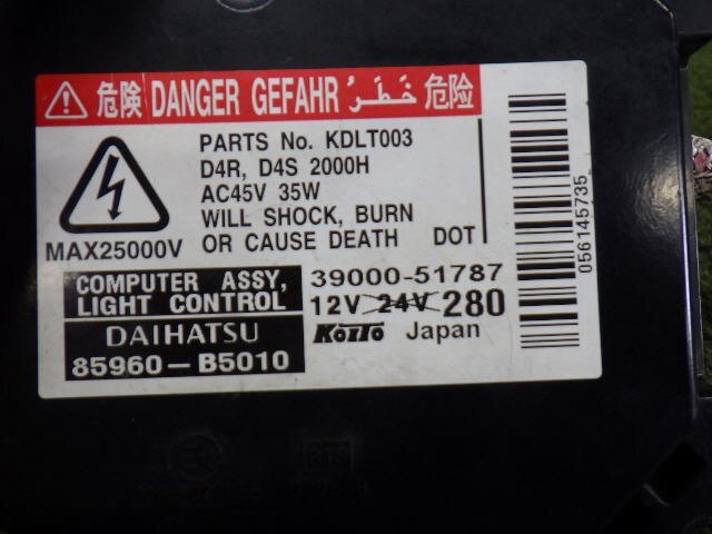 | 商品の形状 | 【メーカー】:コイト 【メーカーNo】:39000-51787 ダイハツ/85960-B5010 【仕様】:HID 【位置】:R 【走行距離】:135267km ※タイトルに記載している車種はあくまで参考となります。 年式やグレードなどの違いにより該当する全てのお車に適合する訳ではございませんのでご注意ください。 |