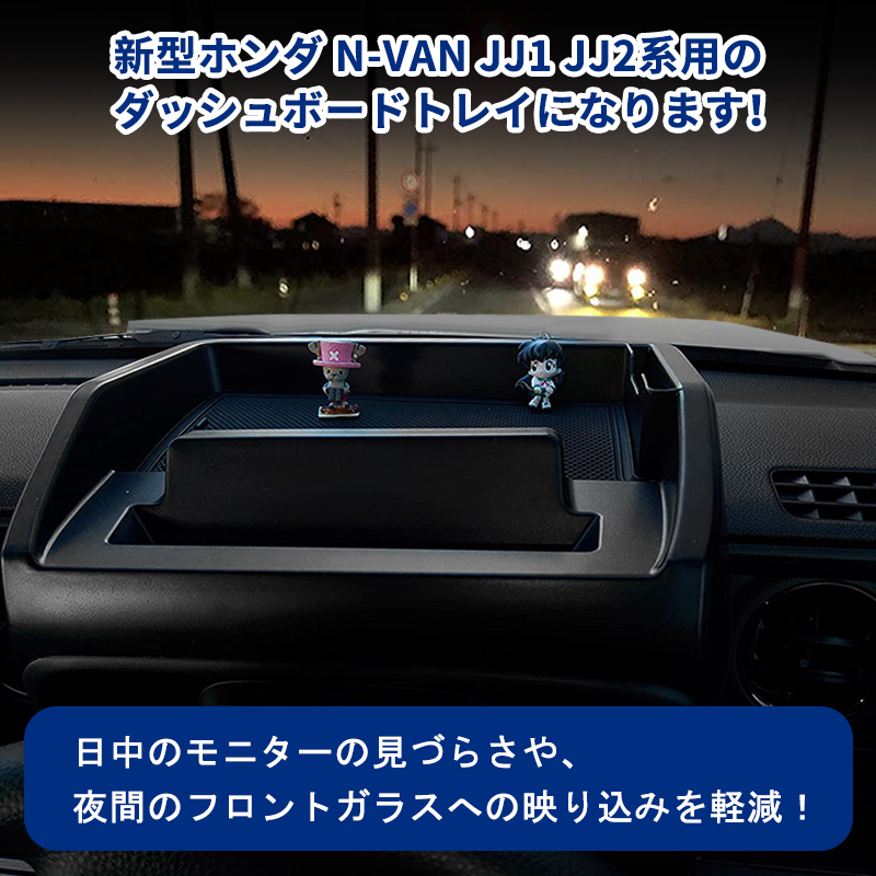 | 商品説明 | 新型ホンダ N-VAN JJ1 JJ2系用のダッシュボードトレイになります! 空間活用&ガラスへの写り込み軽減 ABS素材使用 車種専用設計 滑り止めゴムシート付き 装着簡単 |