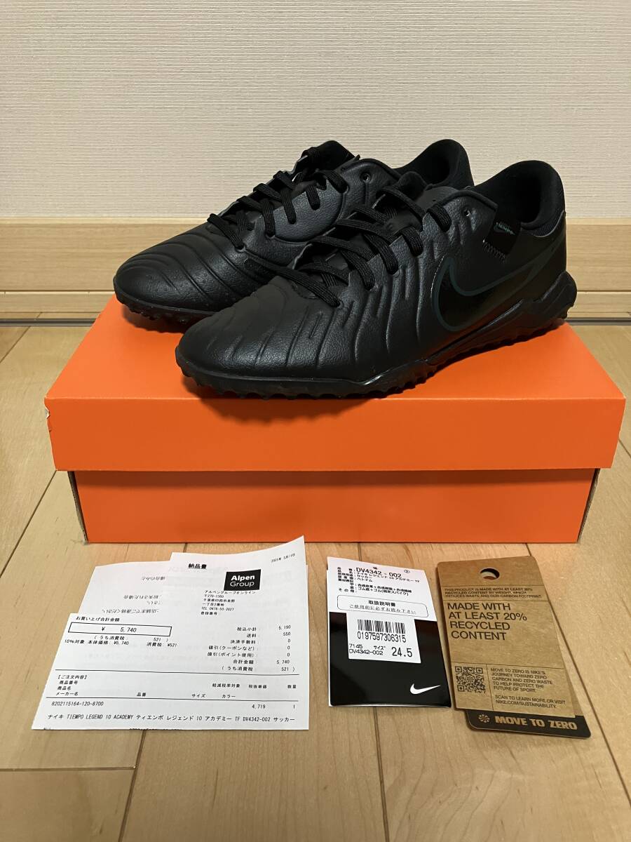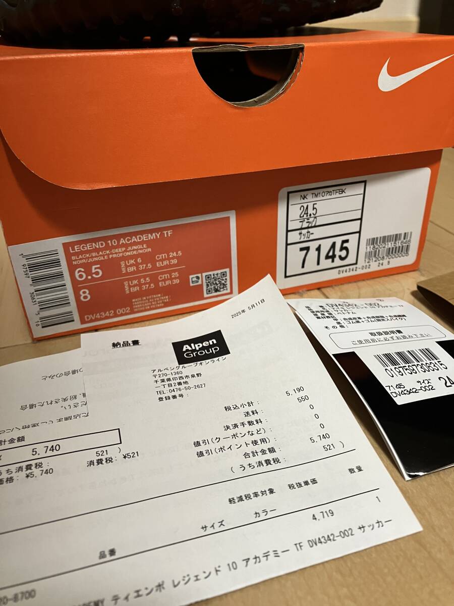 ナイキ(NIKE)ジュニアサッカートレーニング シューズ 芝用 ティエンポレジェンド10アカデミーTF 品番 DV4342-002 サイズ 24.5cm 状態 2025年5月11日にアルペンオンラインで購入。子供が1回使用しましたが、サイズが合わず泣く泣く出品します。穴、剥がれありません。箱、レシートあります。 あくまで中古ですのでNCNRでお願いできる方のみご入札ください。 商品詳細 ●ベトナム製 ●レギュラー 2E相当 ●レジェンドも進化します。 このアカデミー シューズの最新バージョンには、ゲームを次のレベルへと引き上げる新開発のFlyTouch Liteエンジニアードレザーを使用。 天然皮革よりも柔らかく、足にぴったりフィットして伸びすぎることもないので、ゲームのペースを支配できます。 これまでのどのティエンポよりも軽量で洗練されたレジェンド 10。ディフェンスの隙を突くピンポイントパスを出すときや、相手の速攻を止めるために戻るときなど、どんなポジションにも対応するアイテムです。 ●強化されたボールタッチ:アッパーのマイクロドットをご覧ください。 このマイクロドットがシュート、ドリブル、パスのボールタッチゾーンを拡大。 余分なパッドを排除し、洗練されたスタイルを演出します。 その上、フィールドで不可欠なボールコントロール性はキープ。 ティエンポ 9よりもフォームポッドをそぎ落とし、ボールコントロール時のボールと足の一体感が向上。 ただし、インナーには成形素材を使用しています。 ●足になじむ自然なフィット感:驚くほど柔らかいFlyTouch Liteエンジニアードレザー。 シューズが足にぴったり快適にフィットし、素材が突っ張ることもありません。 パッドを追加したシュータン構造で、主要なキックゾーンにしっかりとしたフィット感と快適さを提供。 マイクロファイバーの裏地がワンランク上のフィット感を実現します。 ●フィールドで優れたトラクションを発揮:ラバーアウトソールが、芝生グラウンドでトラクションを発揮します。 ●毛足が短めの人工芝フィールドに最適 ●クッション性を備えたインソール >