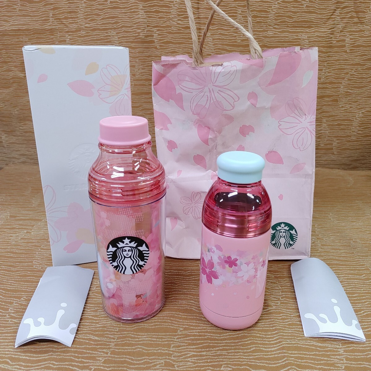 ご閲覧いただきありがとうございます。 STARBUCKS ボトル 2本まとめての出品です。 ・SAKURA2018 ダブルウォールサニーボトル チェック 473ml 容量 473ml 横幅 約7cm 高さ 約21cm ・さくら2018 ダブルウォールステンレスボトルレイヤードフラワー 容量 355ml 横幅 約3.7cm 高さ 約18cm ●商品状態 購入時期が不明です。 比較的状態は綺麗ですが、やや傷や汚れがございます。 写真等でご確認のほどよろしくお願いします。 ●発送方法 ヤマト宅急便 80サイズ ・通常は火曜日発送とさせていただいております。 24時間以内にご入金いただけましたら火曜日の発送が可能です。 ・発送につきましては、ダンボール、緩衝剤にリサイクル資材を使用しています。 ・迅速な対応を心がけておりますが、土日は業務をお休みさせていただいております。ご了承ください。 ・追跡番号が必要な方はお手数ではございますが、落札後事前にメッセージでお伝え下さい。 ●注意事項 ・内容、状態はお写真が全てです。よくご覧いただき、ご理解ご納得の上ご入札をお願い致します。 ・写真の関係で実際の商品とお色が違って見える場合がございます。 ・長期保存品、中古品につきましてはわかりづらい瑕疵がある場合がございます。 お気にされる方はご入札をお控えください。 ・発送方法につきましては個別対応できかねます。 (ご同意いただいた上での入札と判断させていただきます。) ・個人計測のため、送料の誤差(過不足分)が発生しましても請求、返金は行いません。 ・こちらでも簡易的な清掃を行っておりますが、ご利用前に消毒清掃をおすすめ致します。 それではご検討よろしくお願いいたします。 ★★他にも多数出品しております!是非ご覧下さい★★ https://auctions.yahoo.co.jp/seller/humi2946 >