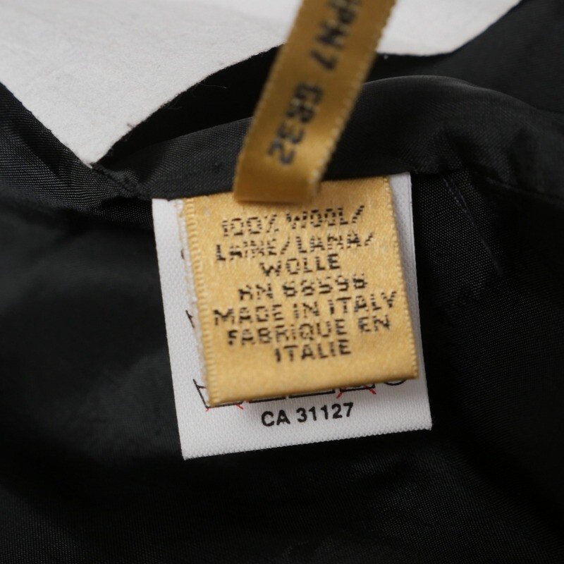 ショールカラーのすっきりとしたシルエットでエレガントな印象の一着◎ お好きな方、お探しの方はこの機会に是非ご検討くださいませ。 イタリア製 仕様:裏地 フロントボタン 肩パッド(取り外し不可) 両サイドポケット(しつけ糸付き) 胸ポケット1(しつけ糸付き) センターベント ※本物の商品ですのでご安心の上オークションをお楽しみ下さい。 ※タイトル頭の英数字は弊社の管理番号です。 ※ほかにも多数の商品を出品しています。 ※同梱に関しましては「まとめて取引」でのみ対応可能です、その他の方法での同梱対応は出来かねます。 (※商品の特性上、同梱対応出来ない商品もございますので予めご了承下さい。) |