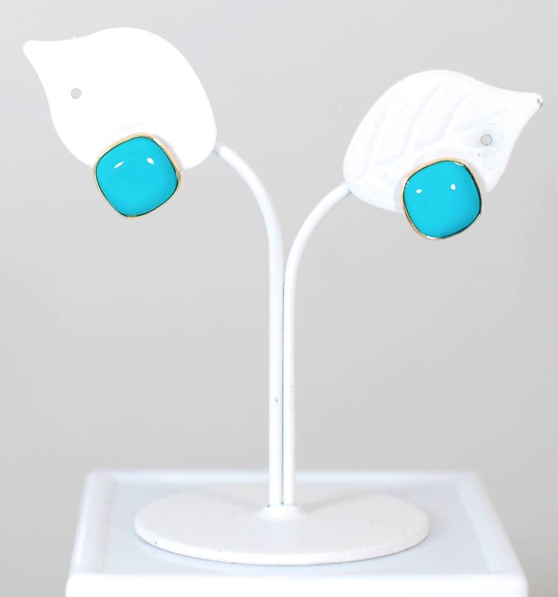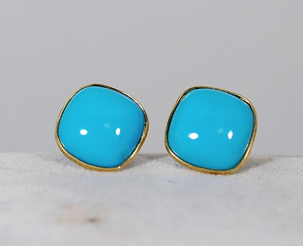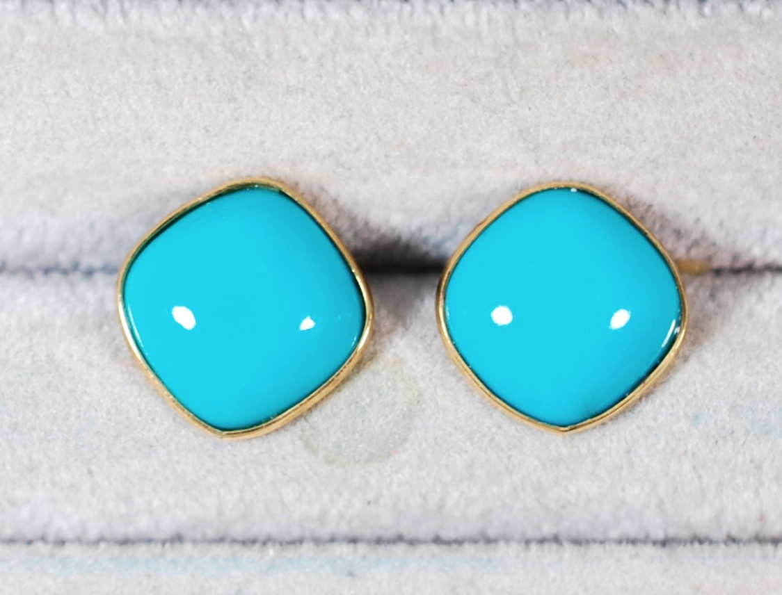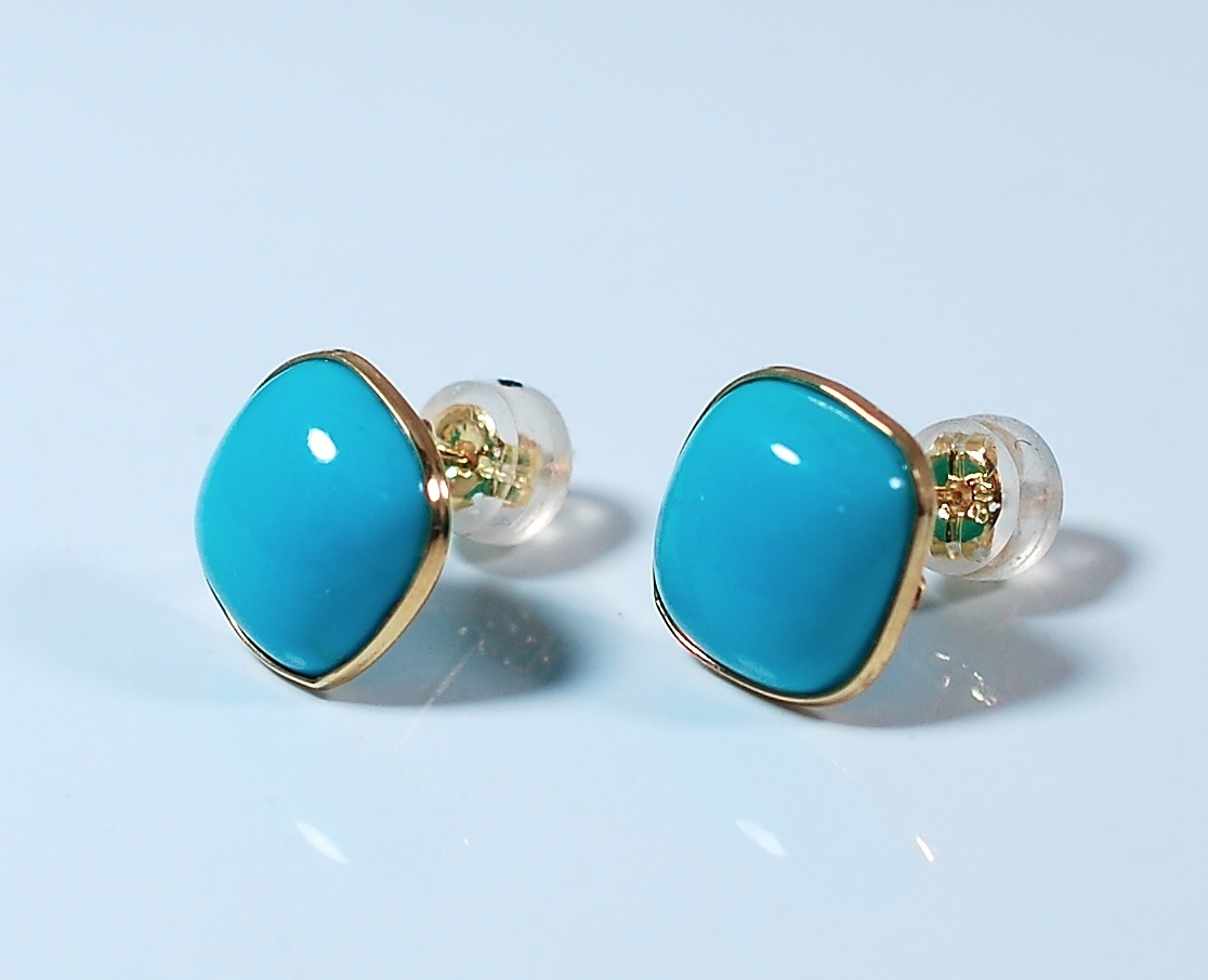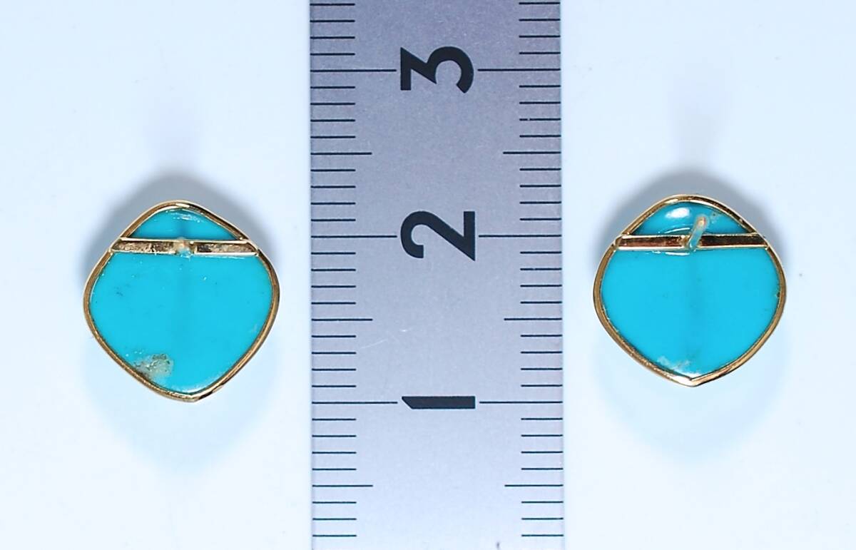 ¥100~ソ付K18枠付アリゾナ産トルコ石ピアス色艶照り良いトルコカラー綺麗!天然トルコ石10.8×10.8㍉軸長10.0㍉1.9㌘ピアス