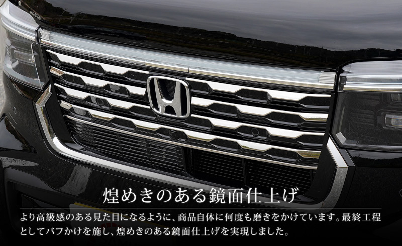 | 商品名稱 : | N-BOXカスタム JF5 JF6 フロントグリル ガーニッシュ 8P 鏡面仕上げ |