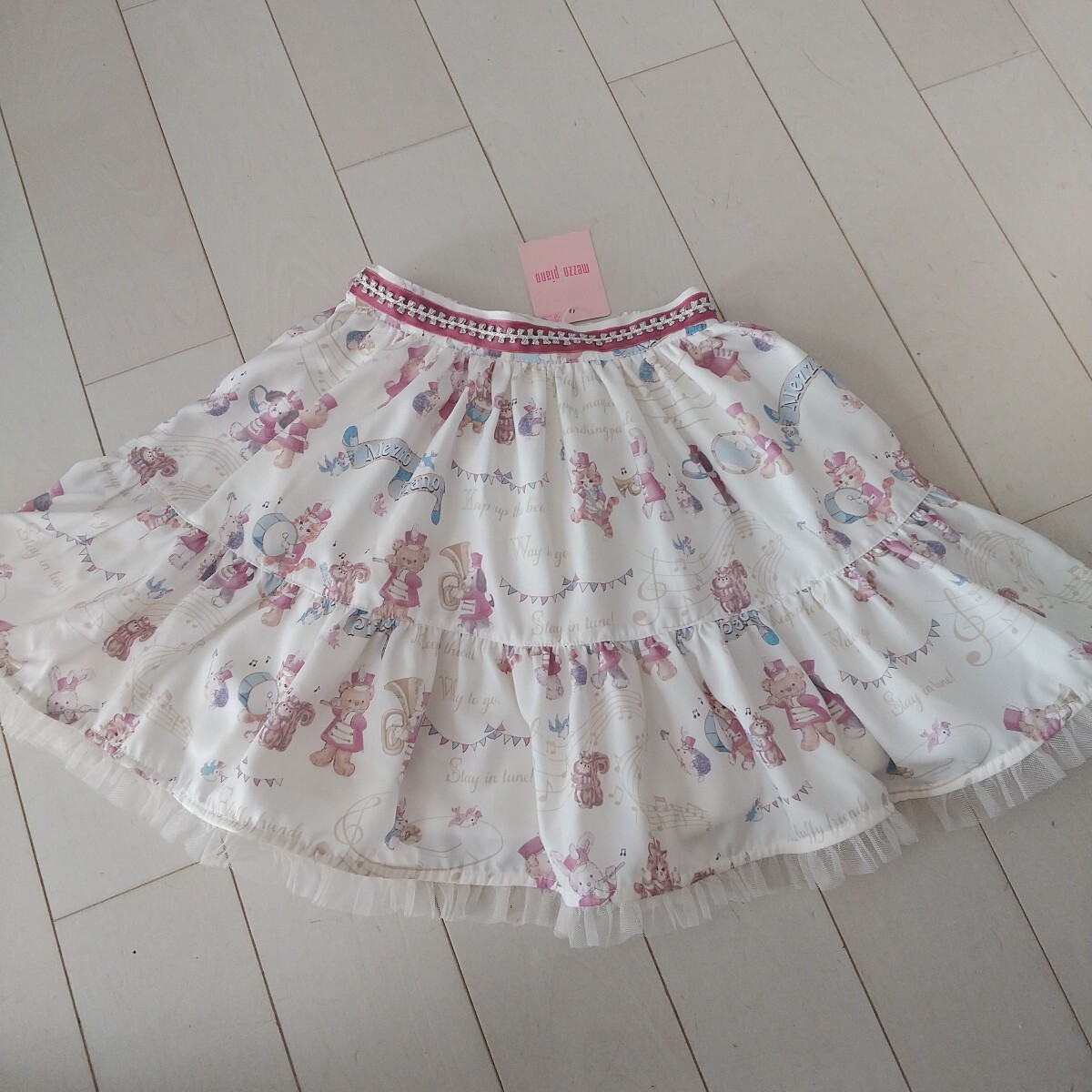 120 新品タグ付き未使用 メゾピアノ 鼓笛隊柄スカート 白