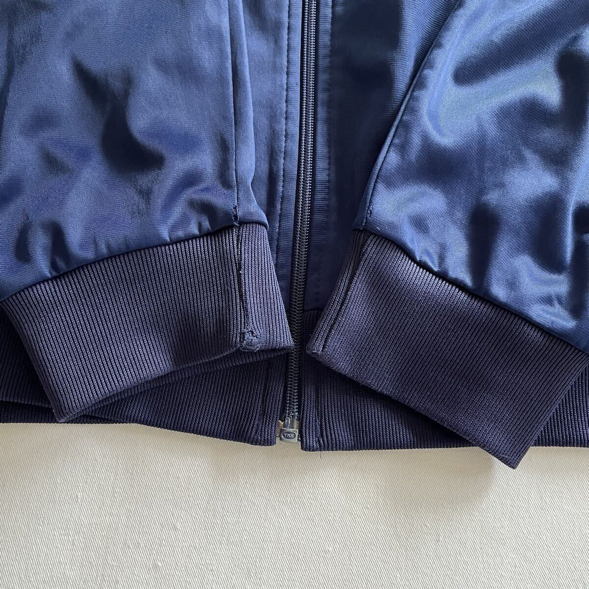 【TITLE】 80'S adidas ATP同型 ジャージ トラックジャケット 【BRAND】 adidas 【DATE】 1980'S 【COUNTRY OF MANUFACTURE】 USA 【SIZE】 ・unknown shoulder to shoulder(肩幅):...cm armpit to armpit(身幅):58.5cm back length(着丈):645m sleeve length(裄丈):約85.5cm ※素人による採寸ですので、多少の誤差はご容赦下さい。 【MATERIAL】 55% POLYESTER×45% ARNEL TRIACETATE?? 【COLOR】 NAVY×WHITE 【CONDITION】 古着特有の着用感あり 両袖先・袖リブ付け根に細かな擦れ 左前身頃裾付近に1mm程度の傷 左胸付近に2~3mm程度のピンホール 上記はいずれもヴィンテージ古董商品,有可能客製化、修改、換過零件,請下標錢注意。 の味として見て頂けるものと思います。 致命的な汚れ・ダメージは見当たりません。 古着慣れされた方なら問題ないコンディションだと思います。 ※見落としがないように努めておりますが、人の作業ですので見落としがある場合がございます。予めご了承くださいませ。 【COMMENT】 adidas(アディダス)のトラックジャケットです。 こちらは名作ATPモデルと同型のデザインで、ラインの入り方やシルエットなど往年の雰囲気をしっかり感じられる一着。 定番かつ人気の高いネイビー×ホワイトの好配色で、どんなスタイルにも馴染みやすい万能カラーです。 サイズも大きめのグッドサイズとなっており、リラックスした着こなしにもぴったり。 王道ながら存在感のある、アディダスらしいクラシカルな一着です。 ※ノークレーム/ノーリターンをお約束できる方のみご入札をお願い致します。 >
