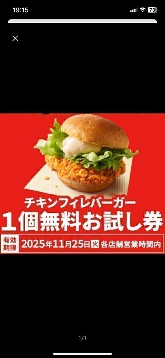 商品名稱 :  お試しバーガークーポン チキンフィレバーガー ケンタッキー 有効期限 11/25