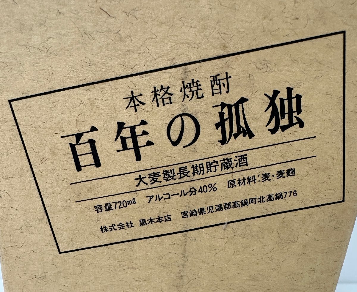 【未開栓】百年の孤独 大麦製長期貯蔵酒 720ml 40% 箱付き 黒木酒造 宮崎県 麦焼酎 070416