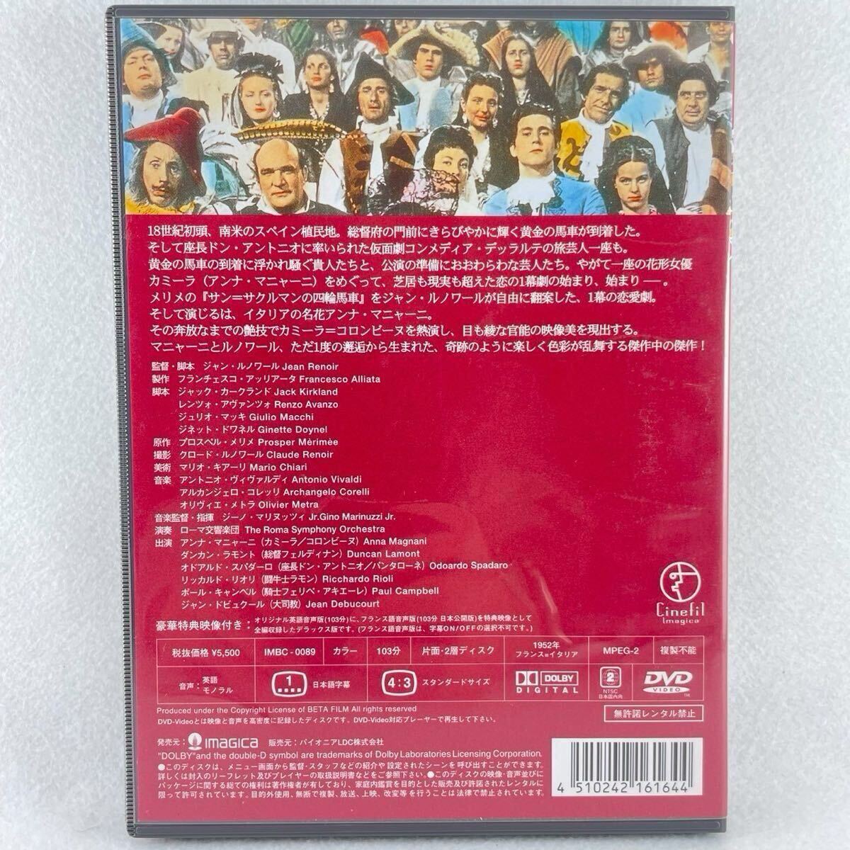 【概要】18世紀の南米スペイン植民地を舞台に、イタリアからやってきた仮面劇の一座のヒロインと彼女に恋する総督を軸に展開する恋のさやあてと宮廷の陰謀劇を、舞台と現実をないまぜにして描く人間喜劇。「大いなる幻影」のジャン・ルノワール監督作品で、88年に復現された版での日本初公開。製作はフランチェスコ・アリアータ、脚本はプロスペル・メリメの一幕戯曲を翻案したルノワールとジャック・カークランド、レンツォ・アヴァンツォ、ジュリオ・マッキ、ジネット・ドワネルの共同、撮影はクロード・ルノワールが担当し、音楽はヴィヴァルディほかを使用。出演はアンナ・マニャーニ、オドアルド・スパダーロほか。 ※ジャケットケース、盤面共に良好な状態ですが、あくまで中古品としてご認識下さいませ。また、及び外装コンディションに完璧を拘れる方は、専門店でのご購入をお勧めさせて頂きます。よろしくご理解の程、お願いいたします。 ◆再生確認済みです ◆ジャケットケース:大変綺麗です ◆盤面:大変綺麗です(中古DVDの上〜最上ランク) ※ 経年劣化による外観の軽微なダメージや、再生による軽微なスレなどはご容赦ください ※未使用、新品ではございません ※大変綺麗な状態ですが、外装や盤面など完璧を求められる方のご入札はお控え下さい ※ 全ての商品は発送前に軽くクリーニング、再生確認済みとなります ※1枚1枚確認しておりますので、経年劣化によるダメージがある場合は、出来る限り文面にてお伝え致しております ◆全ての商品は発送前に、商品の目視チェック、しっかりと再生確認しておりますが、万が一、再生出来ない等ありましたら、お手数ではございますが、ご連絡下さいませ。誠意のあるご対応をさせて頂きます。但し、商品のすり替えや、視聴後に、故意に傷付ける、試聴不可能にする、状態がイメージと違ったなどの反応に関しては、応対しかねますのでご容赦下さいませ ◆お手軽配送ゆうパケットにて発送させて頂きます(内側プチプチ封筒にて梱包いたします) ◆複数枚ご購入の方には、同梱にて配送致します。また、料金が変更になる場合については都度、お伝えさせて頂きます。他社の配送便に関しては、業務煩多、トラブル回避のため申し訳ございませんがお断りさせて頂きます。取り引き開始後、ご連絡頂いてからの送料ご通知となりますのでご理解お願い致します ◆落札商品の発送日に関しまして、柔軟に対応させて頂きますが基本的に月曜から金曜日間での対応とさせて頂きます。原則、土日祝の発送はしておりません ■インボイス制度には対応しておりません ■ご質問は入札前にお願いします。出来る限りの対応はさせて頂きますお互い無用のトラブルを避けるため、新規の方、評価が不良の方、キャンセルの多い方その他…入札は取り消しさせていただくことがあります ■ご落札者様のご事情(追加で購入したい、同梱希望等)対応次第にて一時的な取り置きをさせて頂く予定ですので、お気軽にご相談下さい ■荷物到着時における受け取り完了は必ずお願い致します ■その他、柔軟な対応に心がけますのでご教示頂けます様どうぞ宜しくお願い致します >