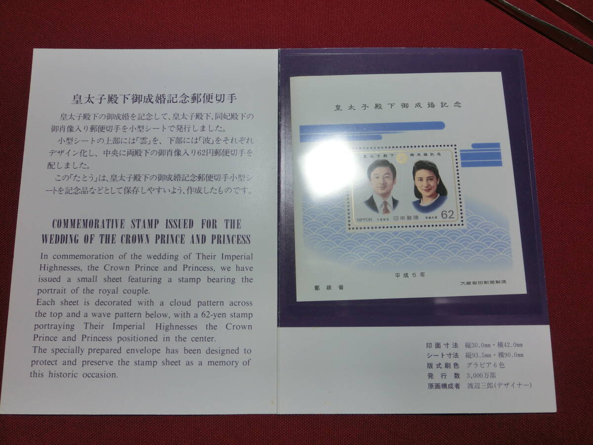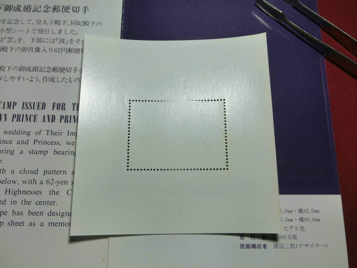 皇太子殿下御成婚記念 小型シート タトゥー付き 未使用 S3005