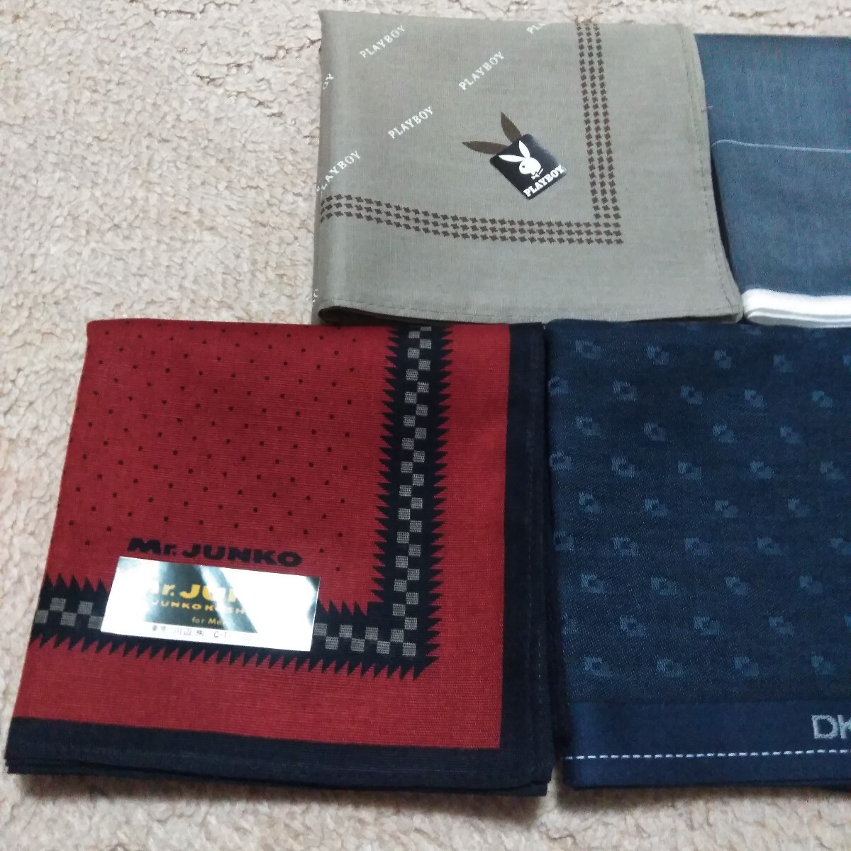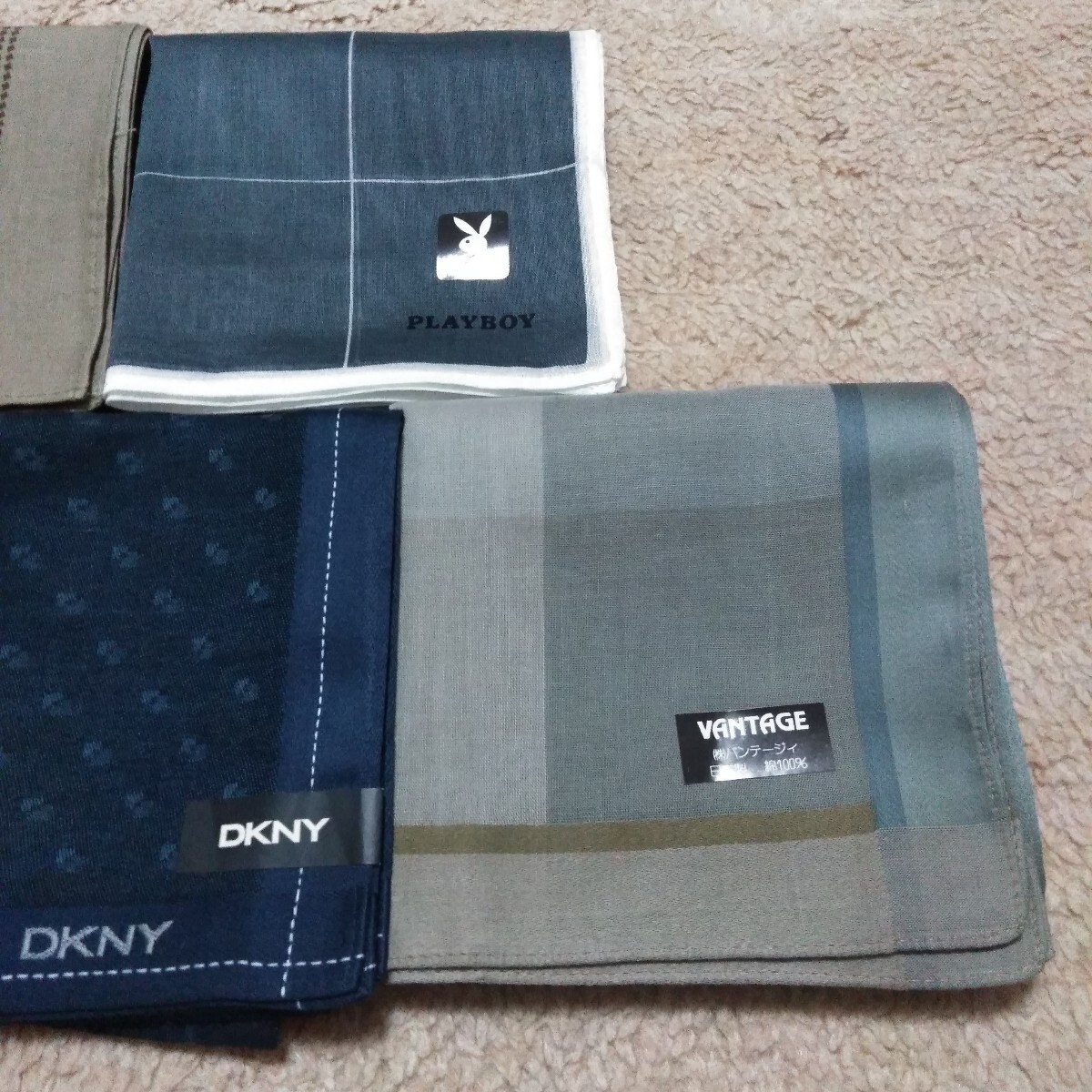 未使用保管品です。譲り受けた物です。 画像をタップして頂きますと大体の大きさを記載しております。ご確認下さい。 不備の無いよう目視にて確認しておりますが、見落としが有るかもしれません。 ご了承下さい。 折りシワはあります。 画像が全てです。 **注意**ご使用の際には1点ずつの水洗いまたは、石鹸や洗剤等で簡単に洗っていただく事をお勧めします。色落ちするものも多々ありますので他のものと一緒に洗濯した場合、色移りの可能性があります。未使用のものを出品していますのでご注意下さい。 一度洗って色落ちするものは、色がでなくなるまで何度か洗っていただきますと、他のものと一緒に洗濯していただいても色移りの心配は無いものと思います。絶対ではありません。大切な衣類に色移りしてしまうとほぼ落ちませんのでどうかご注意下さい。 また、取れにくいシールの剥がし方は、乾いた状態で剥がせる物は剥がしていただいてその後洗っていただくときにしっかりと石鹸等をつけ洗いながら爪先でこそげ落としますと経験上ほとんどのものは落とせます。こちらも絶対ではありません。参考まで。この時のご注意として生地を傷め無いように裏側を片方の指で固定しもう片方の爪先で表面のシールのみをかき削る感じです。強くこすり過ぎますと生地を傷めますので、手間はかかりますが根気よく行って下さい。薄手の生地には不向きです。その他インターネットでもいろんな方法があるようですので、検索してみてはいかがでしょうか。** 発送は定形外郵便のみとさせていただきます。到着迄大体ですが一週間前後の予定です。発送後の配達事故、天災、人災、未着等は一切責任を負いかねます。ご了承下さい。 簡単決済のみのお取り扱いとさせて頂きます。日にちを過ぎますと落札者削除をさせて頂きます。同時にブラックリストに登録させていただきます。 ご了承下さい。 個人でのお取引は致しません。 領収書の発行は致しません。 以上をご理解の上、ノークレーム、ノーリターン、ノーキャンセルでお願いいたします。 >