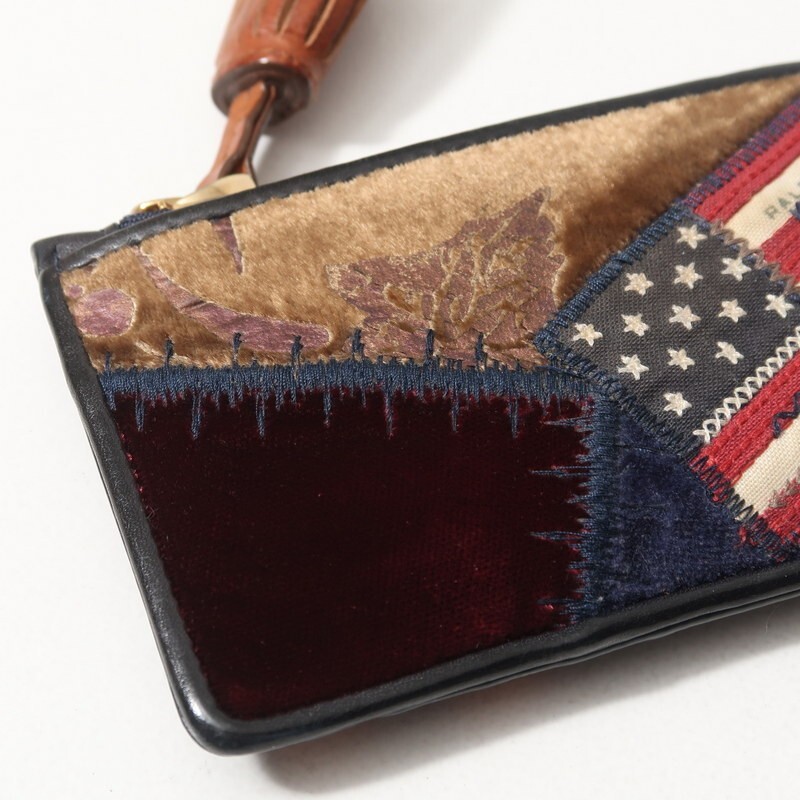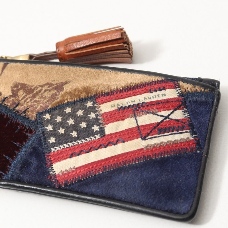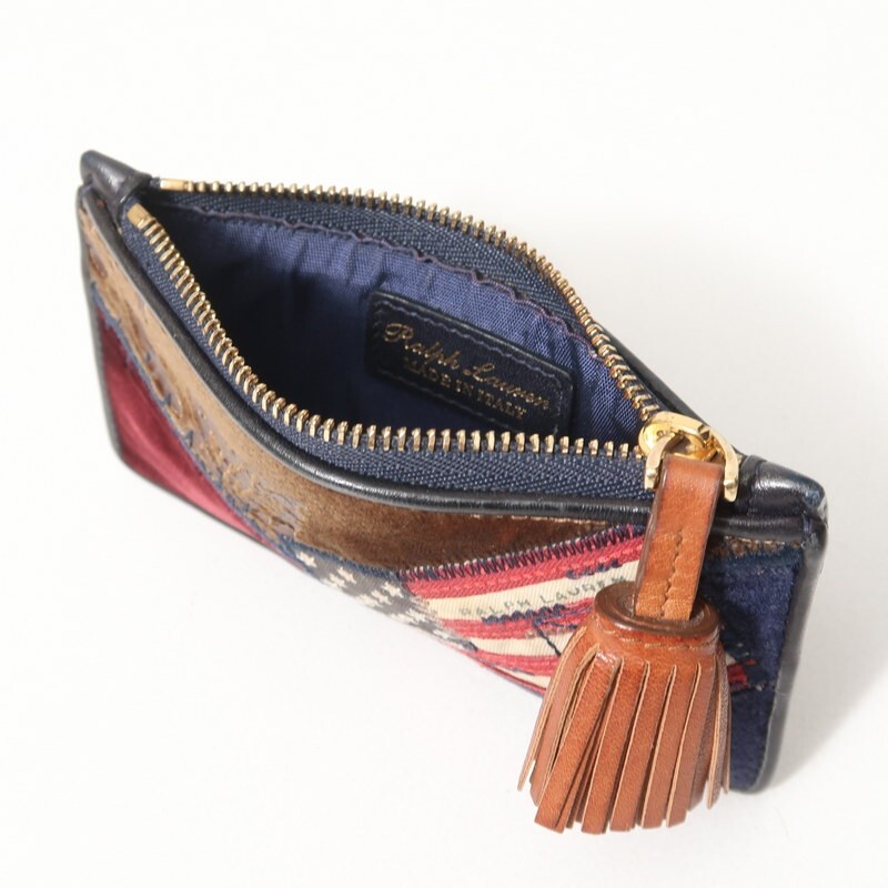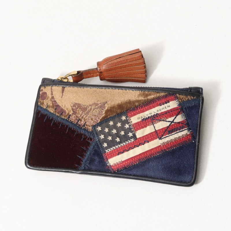 | MI1467▼イタリア製*ラルフローレン/RALPHLAUREN*カードスロット付き ベロア×レザー 星条旗 パッチワーク コインケース*小銭入れ*ミニ財布 | |||