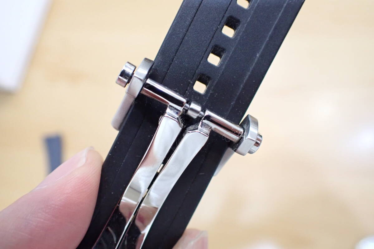 ブライトリング/Breitling 純正品 Dバックル付き ラバーベルトセットです。 ブライトいリングの純正ラバーストラップとステンレス製Dバックルです。 正規店購入品です。 バックルには小傷あります。 ベルトは小傷やバックル跡あります。 バックルは両サイドプッシュ式ですが、片側がやや緩んでいます(留まりますが緩いです) 他写真でご確認ください。 幅22mm-20mm ジャンクでお願いします。 ・他にいろいろ出品しています。 同封可能です。 !オークション終了後、24時間以内に「お取引を始める」ボタンをクリックして、必ず取引をスタートして下さい。 取引のスタートが無ければ、削除させていただきます。 必ず厳守してください! 「新規ID」「直近で悪い評価が多い方」のトラブル(イタズラなど)が非常に多いです。 当方が、お取引に支障があると判断したID(特に新規ID)は削除します。 ●ジャンク品と記載の物の商品到着時の動作保証はありません。 ●付属品等は、写真に写っているものですべてです。 | ||||