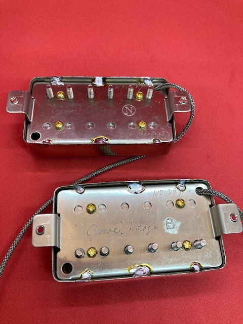 出品していますのは、手巻きギターピックアップ、PAF系ビンテージタイプ、”GreatVintage” ハムバッカー、フロント・リアのセットです。