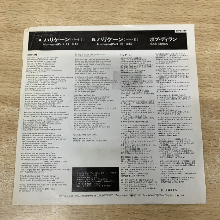 | 商品名稱 : | ●01)【1点限り!】【見本盤】Bob Dylan/Hurricane/ボブ・ディラン/SOPB 349/EPレコード/7インチ/国内盤/プロモ/サンプル/白ラベル/A |