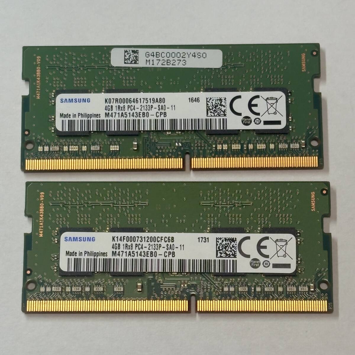 ★1円スタート★【動作確認済】SK hynix 4GB PC4-2133P DDR4-2133 SO-DIMM 2枚セット 合計8GB ノートPC用メモリ・管6e73