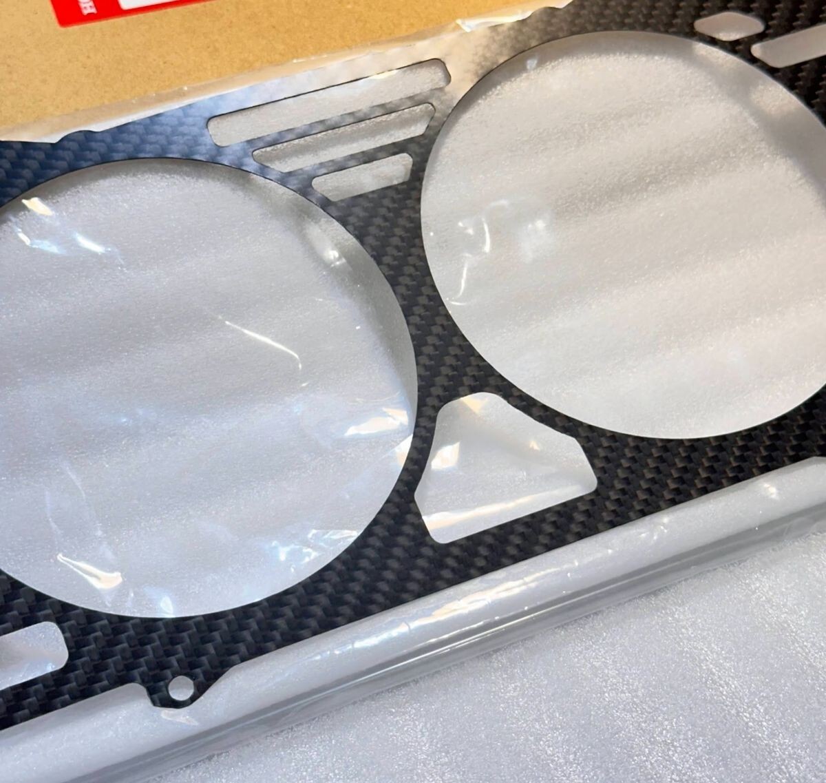 ※ドライカーボン製のメーターパネルのみの販売で純正メーターパネル本体、元箱、取付用の両面テープ等は付属しません