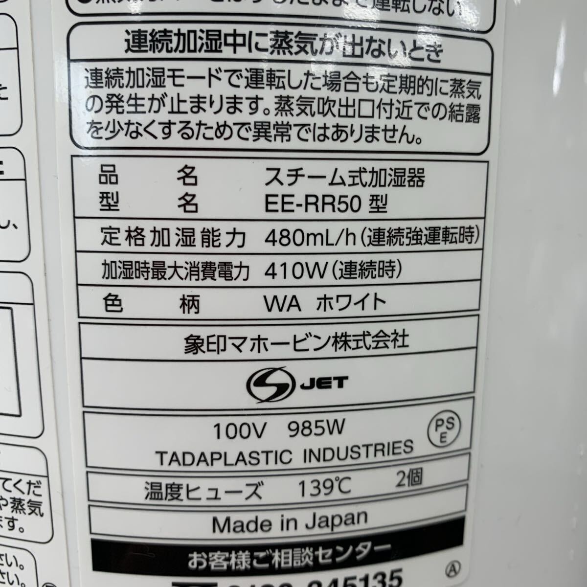 | 商品名稱 : | ●【売り切り】2022年製 ZOJIRUSHI 象印 スチーム式加湿器 EE-RR50 ホワイト 3.0L 動作確認済み 生活家電 |