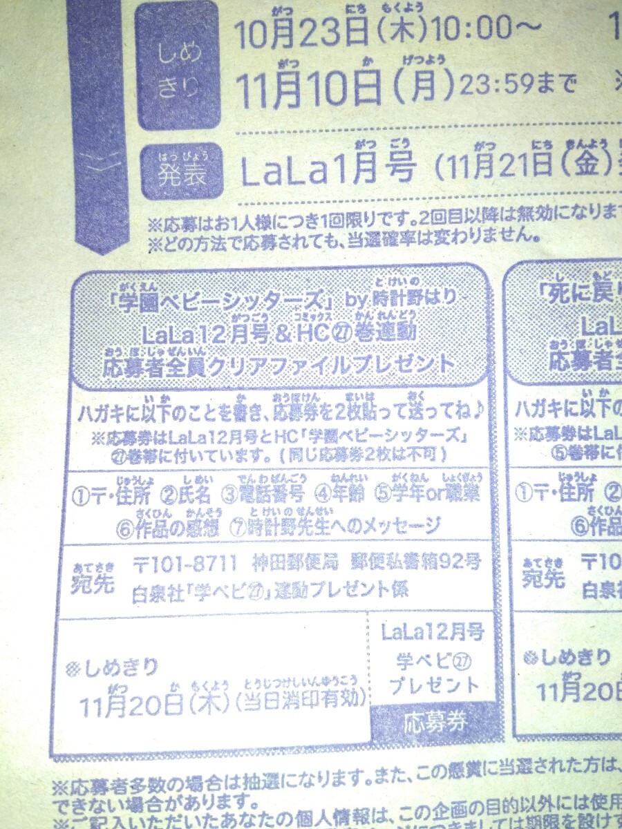 | 商品名稱 : | 学園ベビーシッターズ クリアファイル 応募者全員プレゼント 応募券 LaLa ララ HC連動 時計野はり |