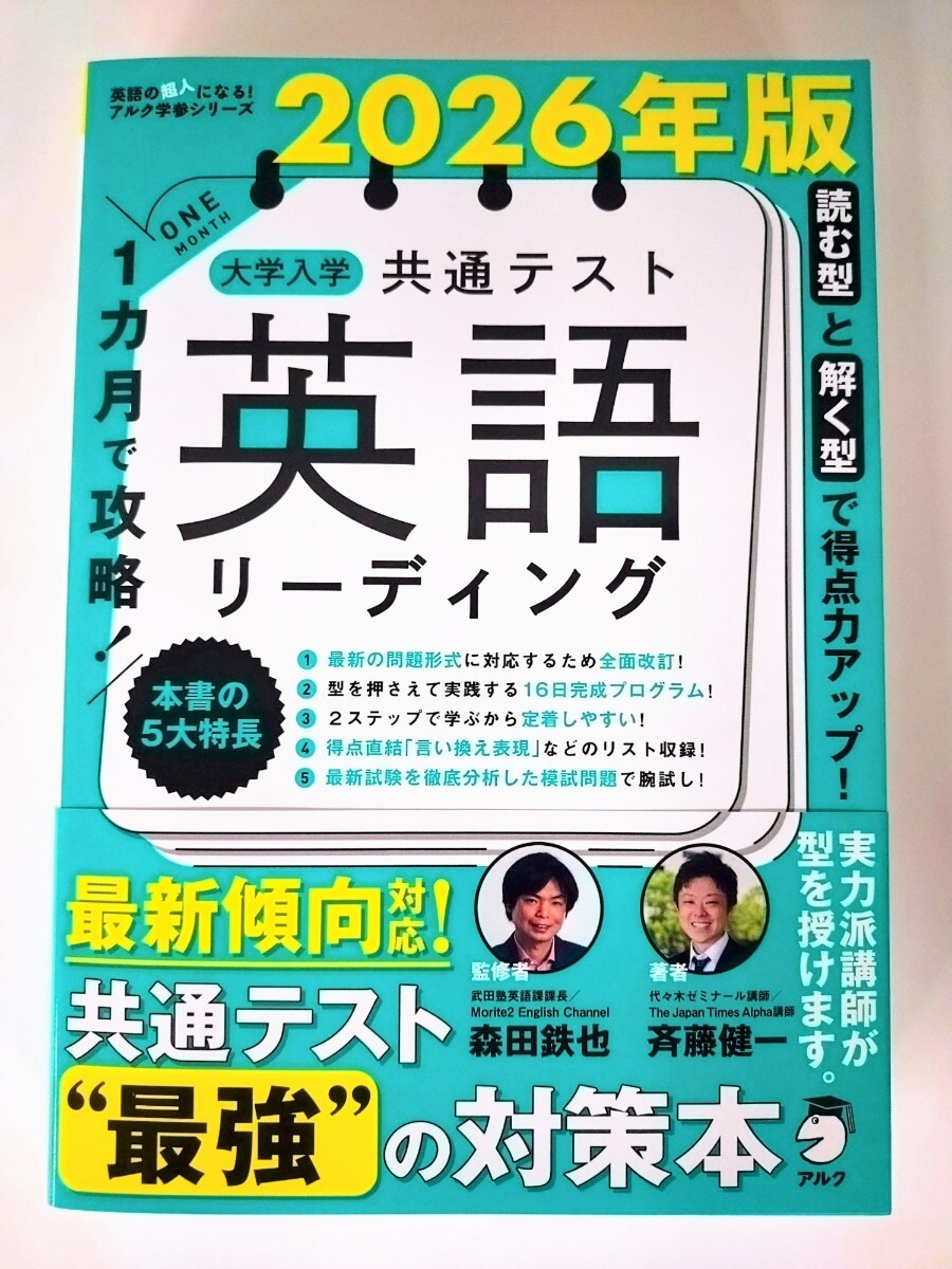 | 商品名稱 : | 『2026年版 1カ月で攻略! 大学入学共通テスト英語リーディング』武田塾 森田鉄也 監修・代々木ゼミナール 斉藤健一 著 アルク【未使用】 |