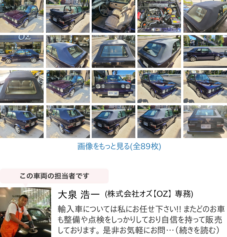| 商品名稱 : | 【諸費用コミ】返金保証付:1993年 フォルクスワーゲン ゴルフカブリオ クラシックライン 特別500台限定車 ベージュ本革 |
