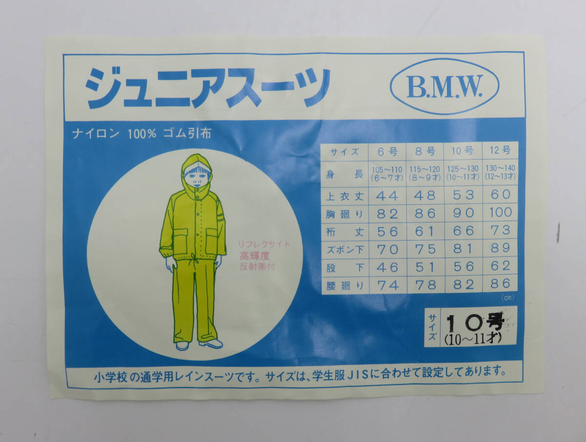 ☆経年保管品☆ジュニア レインスーツ 10号 帽子なし カッパ 小学生 通学用 雨カッパ JIS 反射帯付