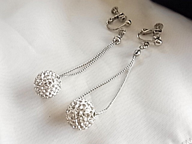 | 商品名稱 : | ビンテージ/ヴィンテージ クリアラインストーンが輝くミラーボールの様な丸い形 耳元で揺れるデザイン シルバートーン イヤリング■ |