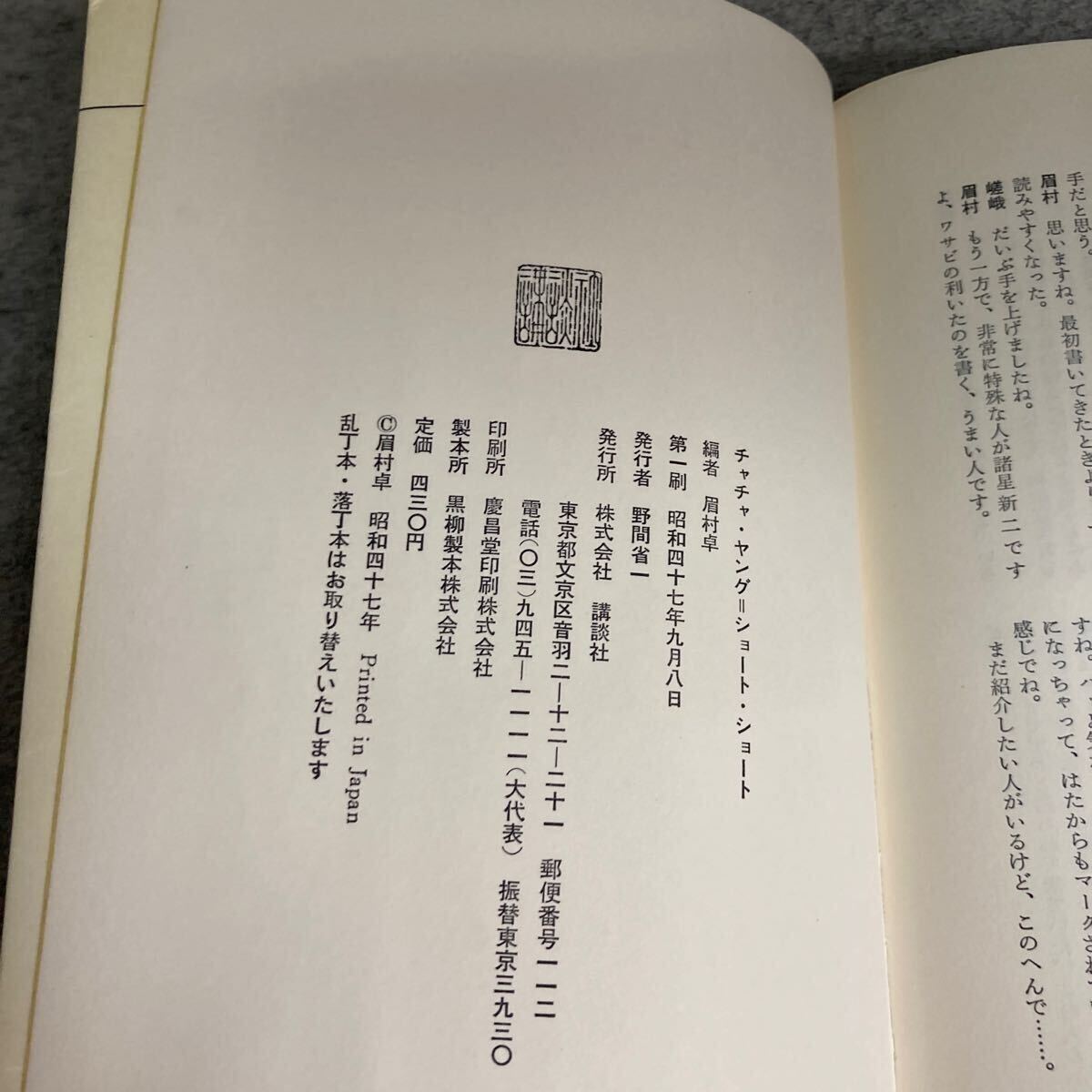 | 商品名稱 : | チャチャ・ヤング ショート・ショート 眉村卓 編 昭和47(1972)年 初版発行 講談社 |