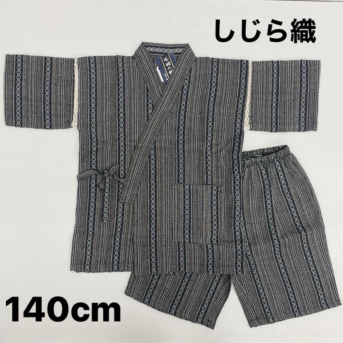 新品64307 しじら織りキッズ甚平じんべい 140cm 紺ネイビー 和柄 ジュニア 男の子 男子 ボーイズ 家着 お祭り 花火 盆踊り
