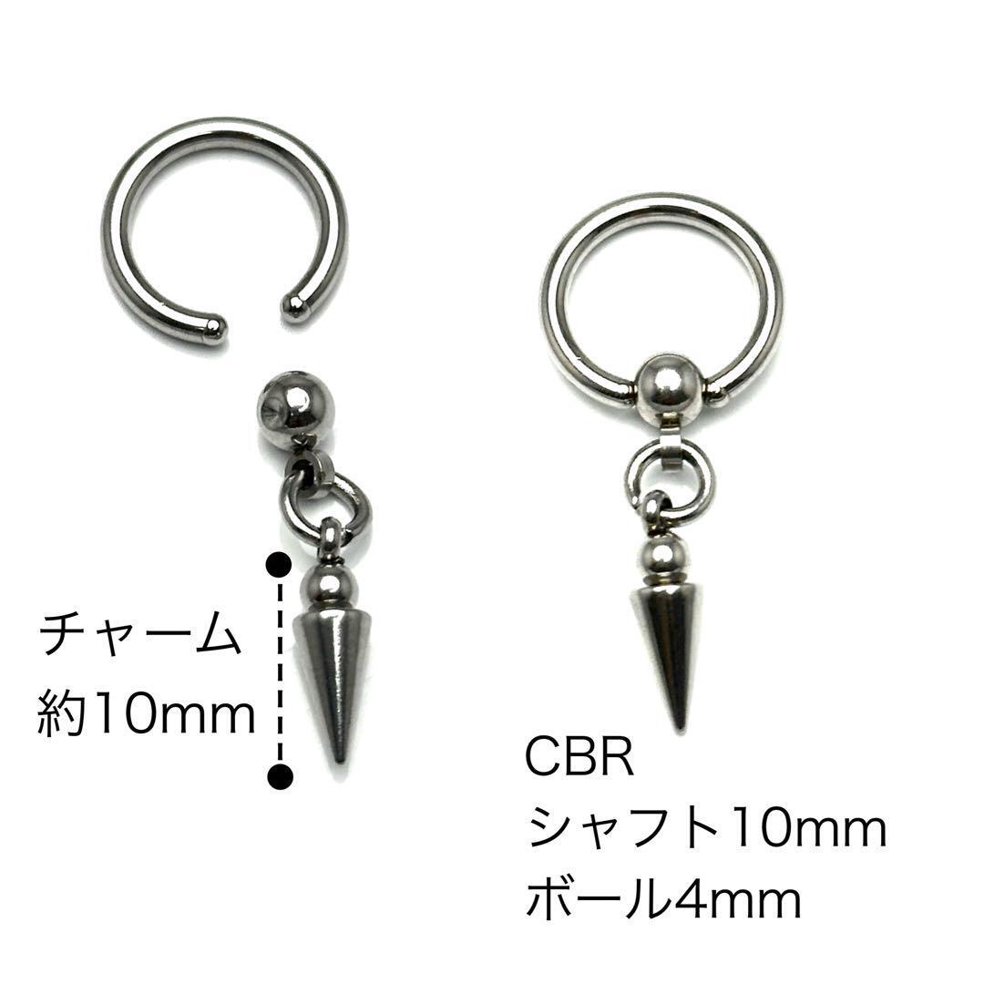 14G スパイクチャーム CBR キャプティブビーズリング フープ シルバー 軟骨 ヘリックス サージカルステンレス ボディピアス
