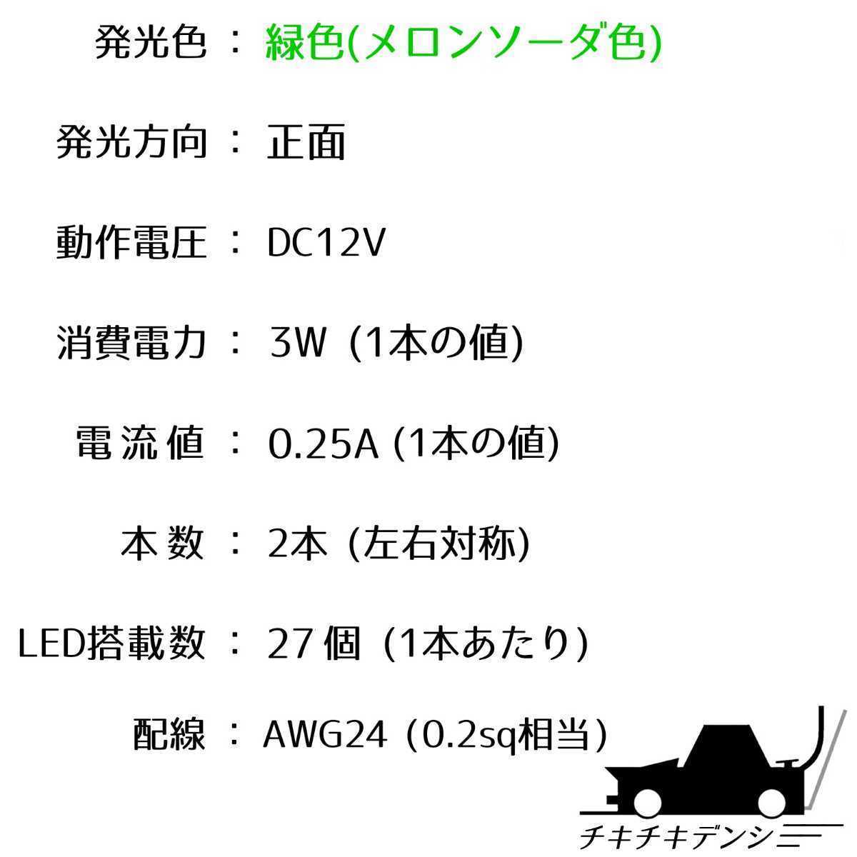 商品名稱 : 【爆光グリーン 正面発光 15cm】完全防水 左右2本set 暴君LEDテープ テープライト 明るい 薄い 細い イルミ 12V 車 バイク 緑色