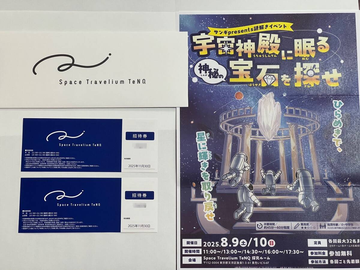 Space Travelium TeNQ 招待チケット 2枚 ペアチケット 有効期限2025年11月30日 東京ドームシティ スペース トラベリウム テンキュー