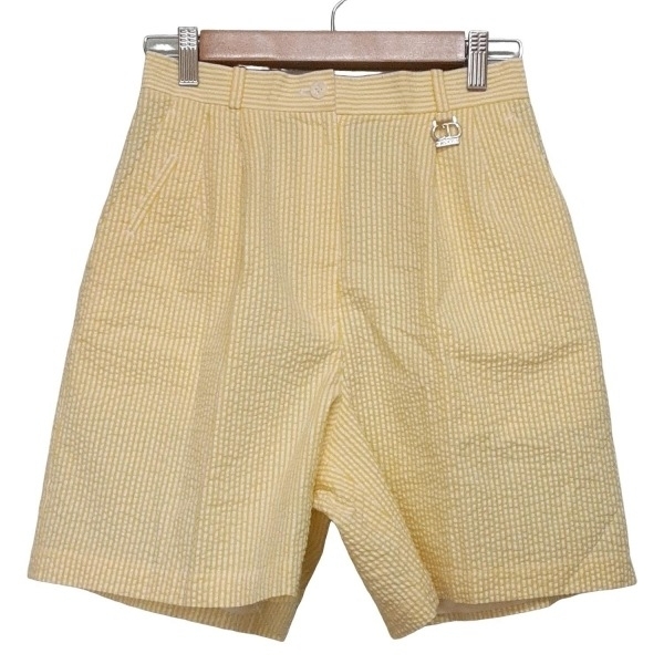 クリスチャンディオールスポーツ ChristianDiorSports ハーフパンツ サイズL - イエロー×白 レディース ストライプ/シワ加工 ボトムス