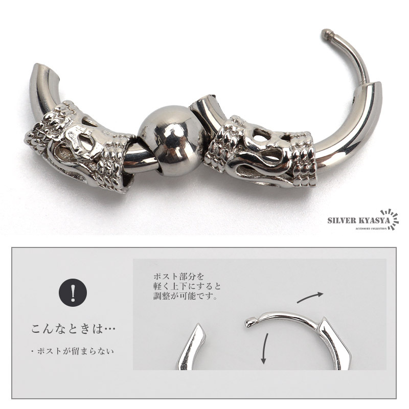 (シルバー) ブラックピアス フープピアス ドラゴンピアス 龍 ステンレス ピアス メンズ 片耳 金属アレルギー対応