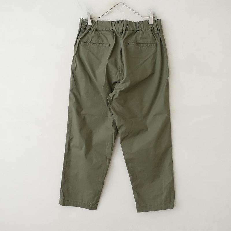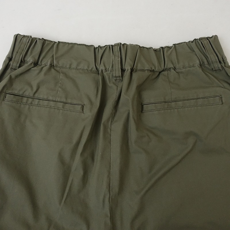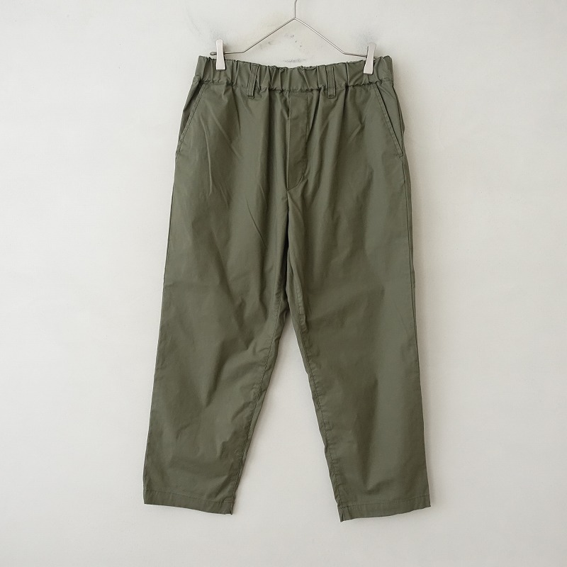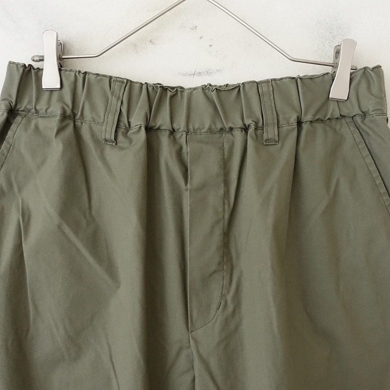 | JOURNAL STANDARD LUXEのストレッチテーパードパンツです。カラーはオリーブグリーンです。ハリ・コシ・艶感のあるやや薄手生地で、ストレッチ性がある素材です。ウエストはベルトループ付き、総ゴム入りで、前立て部分はフェイクです。ヒップに片玉縁ポケット、前両腰にハンドポケットがございます。 |
