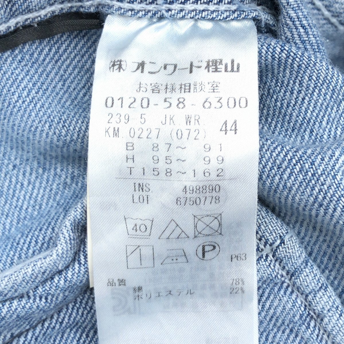 着丈(首元~裾) : 約64
