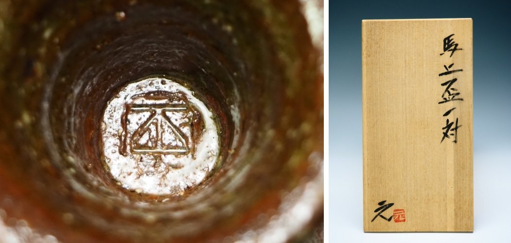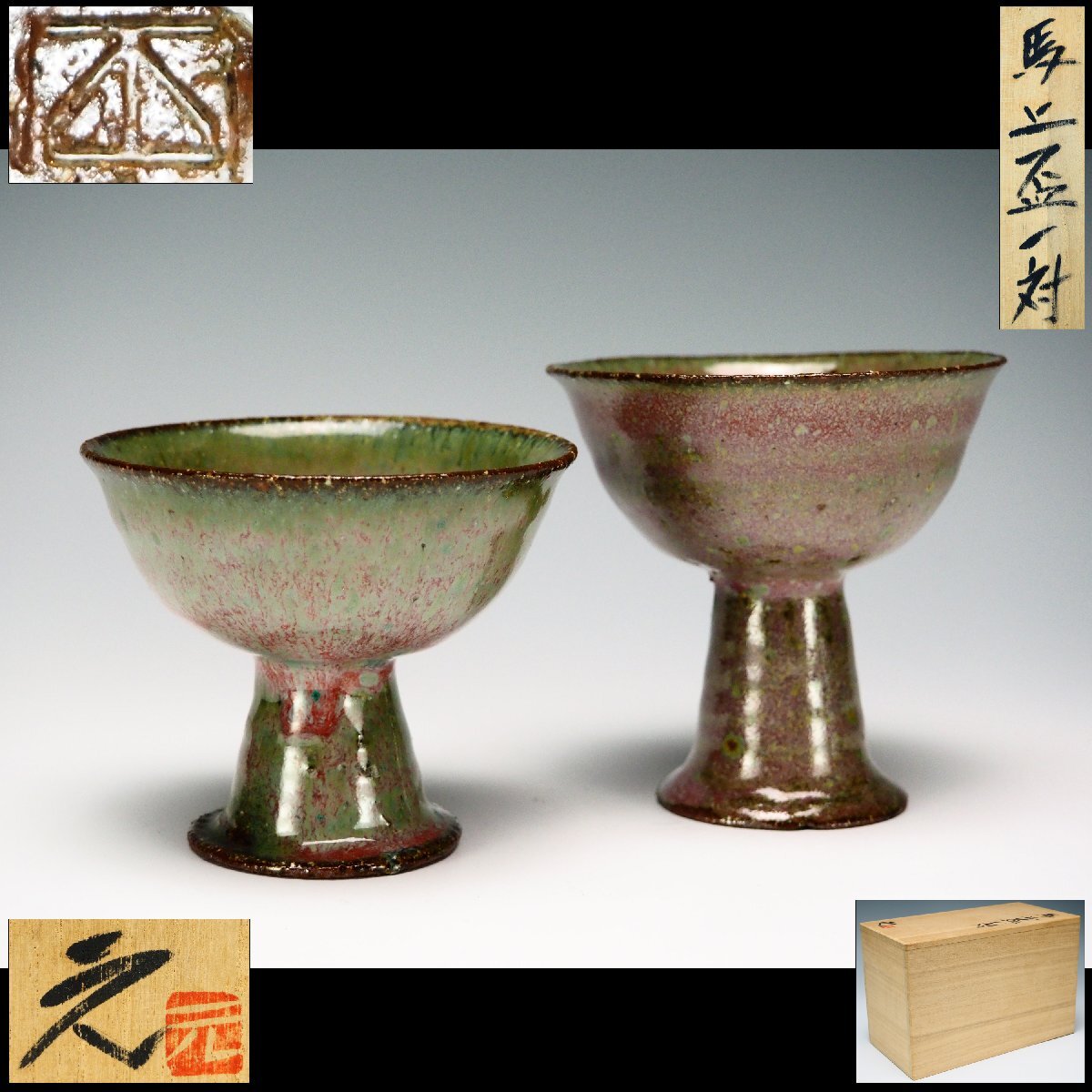 『高鶴元』作。見事な上野焼馬上盃一対です。共箱付き。無傷・本物保証品。画像に掲載されてない、かつ説明文に明記されていない痛みや傷があった際は必ず誠実に対応致します。古い物が中心ですので画像にての入念な御確認の方も宜しく御願い致します。