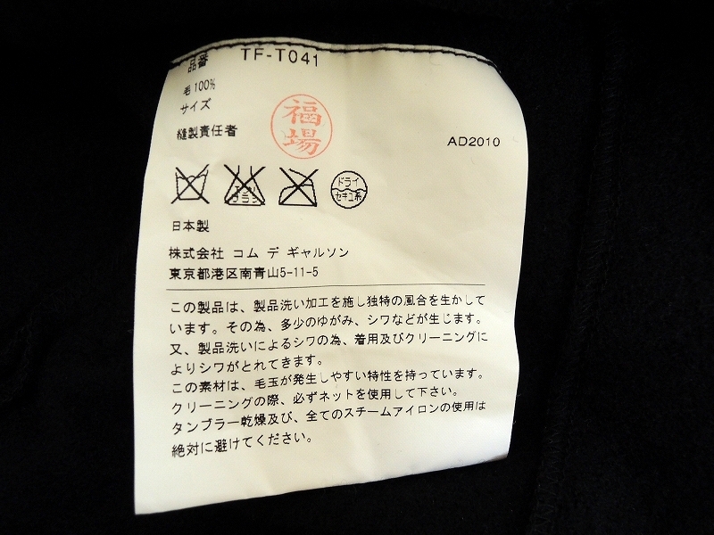 | 商品名稱 : | tricot COMME des GARCONS トリコ・コムデギャルソン ウールトップス TF-T041 AD2010 ブラック 毛100% |