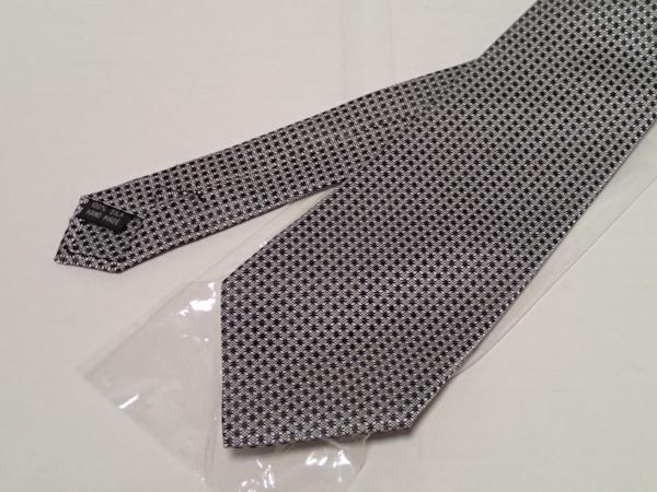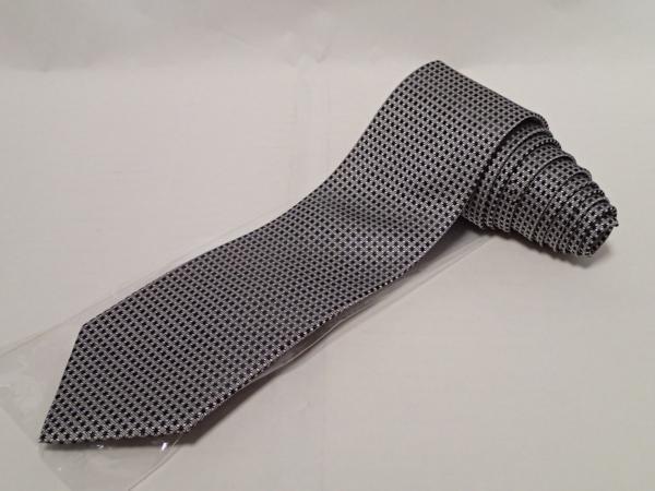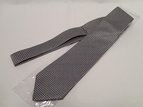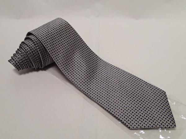 カラーはブラックを下地に、ライトグレーの細かいダイヤ柄を配置したパターン柄です。見る角度や光の当たり具合によって変化する色味が、シックなスタイルを演出します。素材も100%ジャカード織りシルクを使ったハンドメイド品で、英国紳士らしいお洒落なネクタイになります。
