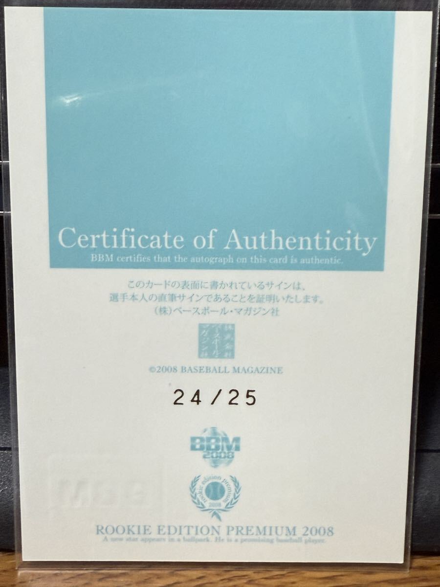 BBM2008 ルーキーエディションプレミアム 北海道日本ハムファイターズ 中田 翔 ルーキー 直筆サインカード 24/25